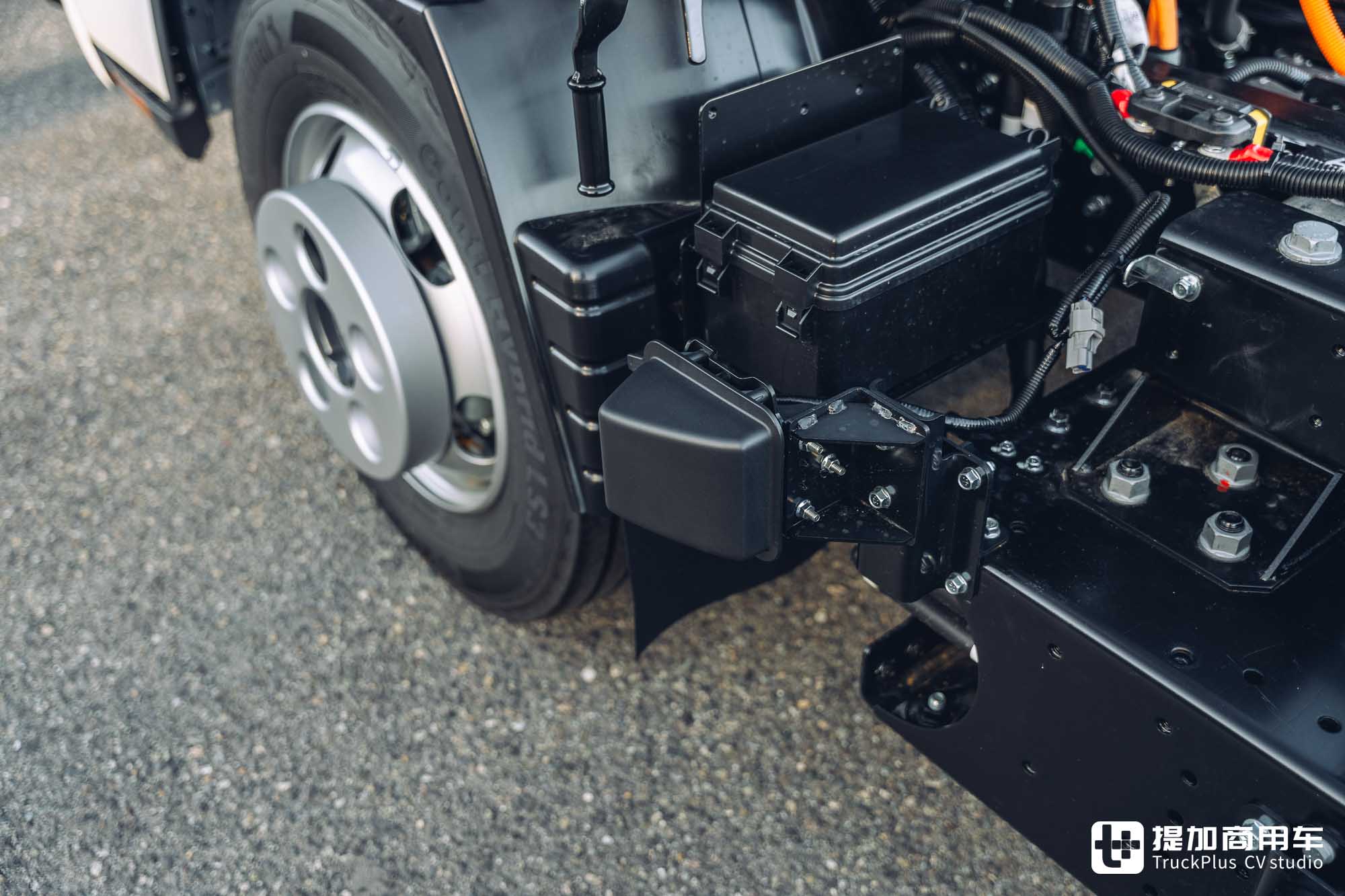 根据车辆轴距不同,三菱扶桑eCanter提供三种不同的电池配置,容量分别为41.3kWh、82.6kWh及123.9kWh。同时,三菱扶桑eCanter采用了e-Axle集成式电驱桥,具备110kW、129kW两个版本。