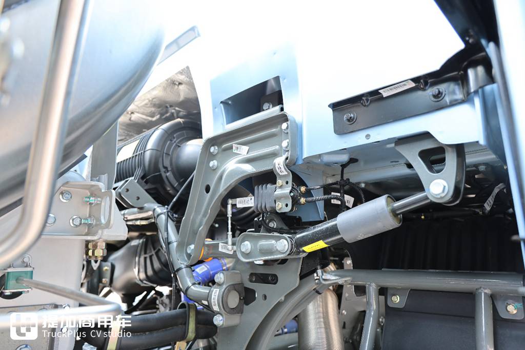 豪沃TS7-H驾驶室悬置机构全新优化,四点式气囊悬浮+萨克斯横向阻尼器搭配,在过滤路面颠簸同时,还能抑制驾驶室横向晃动,在烂路行车时驾驶员也不会产生摇晃的不适感。