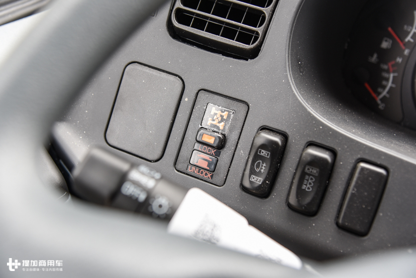 新款内饰并不包含车顶部分,中间一个巨大的照明灯是典型的日系卡车设计风格,够大够亮。