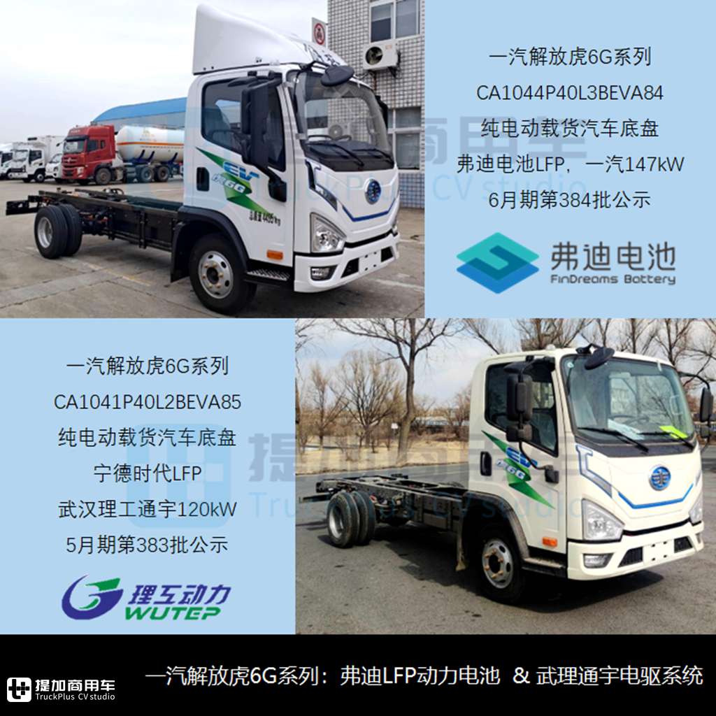 - 一汽5月期申报了CA1041P40L2BEVA85纯电动载货汽车底盘,搭载宁德时代LFP动力电池、车架纵梁中间布置,匹配武汉理工通宇120kW电驱系统,与厢运版整车同期申报公告,箱长4160mm、额定载质量1250kg,可选液压尾板,最高90km/h。目前一汽4.5吨BEV轻卡底盘车的电驱系统有:一汽自用七款、苏州绿控三款、武汉理工通宇和精进各两款,苏州汇川和上海中科深江各一款。由此看出,一汽电动轻卡的电驱系统以内配为主、外配为辅,而能进入解放配套体系的第三方企业,也是对其实力的一种认可。