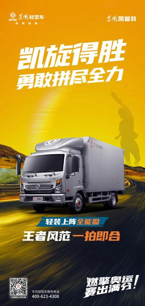 当数百奥运健儿在巴黎的赛场上,挥洒汗水扬我国威之时,同样有一群人,与东风轻型车一起,披星戴月,翻山越海,不断刷新着自己的里程记录。以敢拼敢搏的精神,做自己生活中的冠军。在不断追求敢于超越的生活之路上,东风轻型车将与用户们紧密连接,形成心的共鸣,携手用户努力为生活赛出满分!