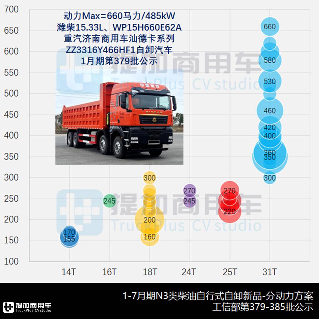尽管电动化浪潮不可阻挡,但从市场端看,柴油动力依然把持近八成的最大份额。在二者实现王位交替之前,广大车企仍可对柴油车型进行产品资源的充分利用,故笔者对N3类重型柴油自卸新品做单独关注,本篇对动力方案进行分析。本期内共有14-31吨的六大GVW规格、合计80组动力方案,具体看: