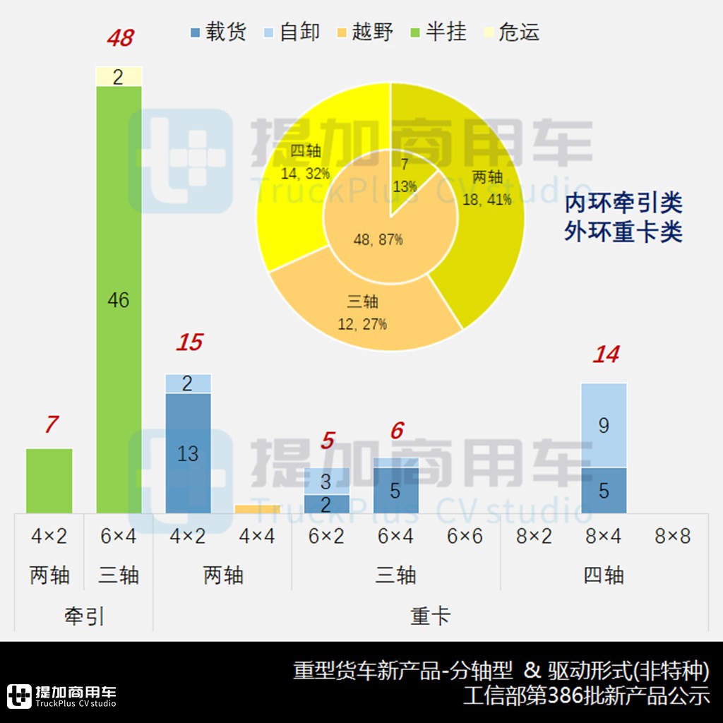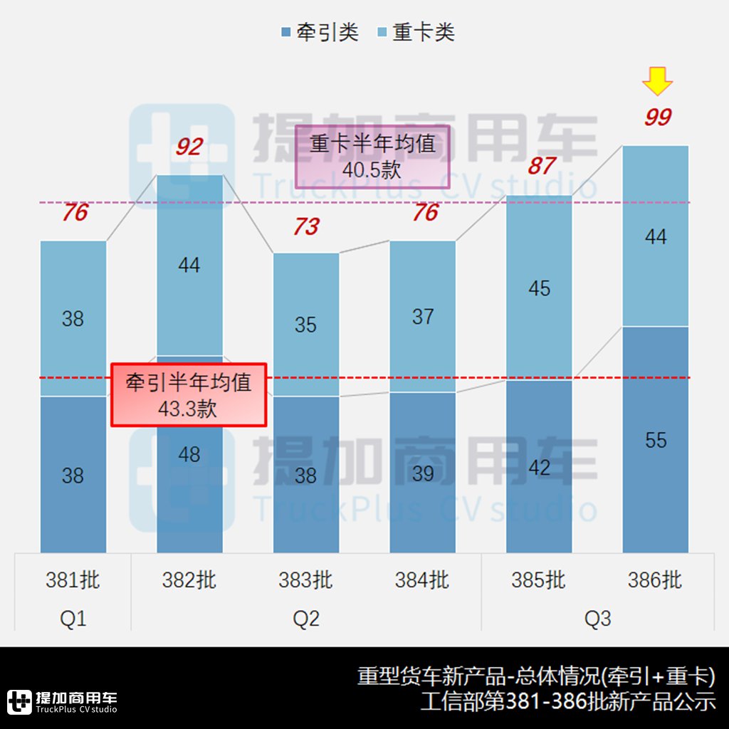 8月9日中午,工信部发布今年8月期第386批新品公示,识别后的牵引类(整车口径)和重卡类(底盘口径)新品分别为55和44款,折算成“重型货车”合计99款新品,近百成绩也达到2024年峰值,同、环比分别增长16.5%和13.8%。在市场端不断走低之际,研发端却在持续发力,这也是“冰火两重天”的又一例证。本月期共三款“特殊车型”,均为上月期首次申报,包括雷驰-深向星辰HLD4250TSE9BEV、徐工XG2系XGA4253FCEVWC1和重汽成都豪沃V7-X系ZZ5214TN4517F1。