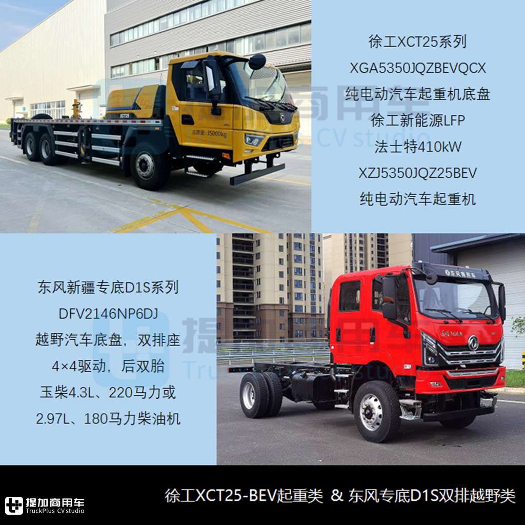 徐工BEV起重类,解放鹰途18吨/危运LNG、J7燃气16升、J6L普及电驱桥