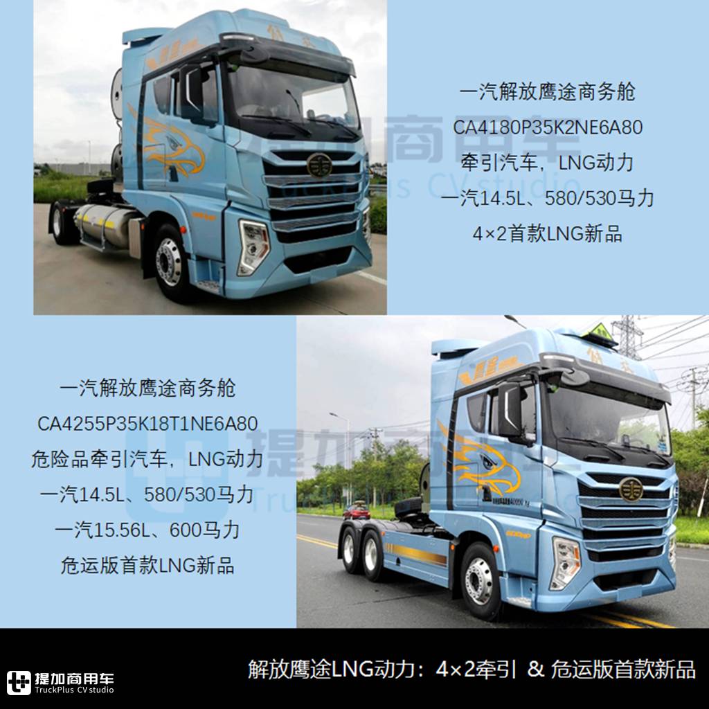 自推出鹰途系列后,一汽解放将其定位为物流运输旗舰战略产品,打造了商务舱、头等舱和生活舱的不同版本,此前已累计11款半挂牵引、三款危运牵引和两款8×4高端重卡,并在不断细化产品线,使其满足更多的高端客户需求,本月期继续申报了两款商务舱的“首款”新品。