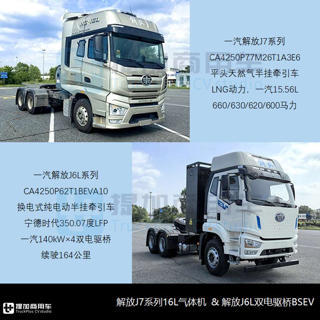 此外,一汽还推出16升气体机的解放J7牵引车,以及应用电驱桥的三款BEV新品,由此可看出解放巩固重型货车业务的决心。