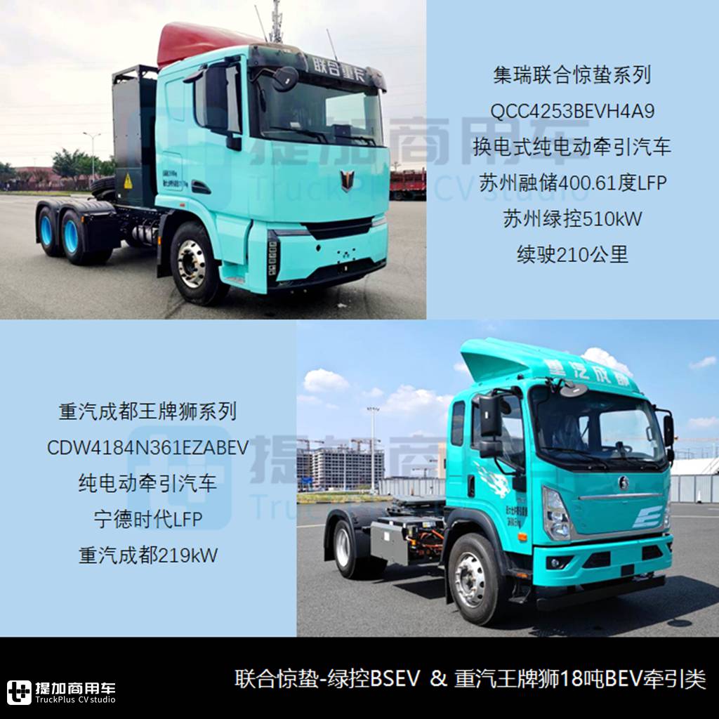 - 集瑞联合携手零一汽车布局了惊蛰牵引车,本批其申报了首款采用“苏州造三电”的新品,即QCC4253BEVH4A9换电式纯电动牵引汽车。该车准乘2人,轴距3825mm,可选九组板簧悬挂,准拖38.17/37.17吨挂车,搭载兰钧新能源单体、苏州融储成组400.61度LFP动力电池,后背式换电方案,苏州绿控510kW单电机电驱系统,续驶210公里。零一此前选择的三电供应商相对稳定:动力电池为弗迪(集瑞)、宁德时代和湖北亿纬(三环),电驱系统均为江苏华永。而本次新车也做出了新尝试,配置更加“大众化”;另外此车同时可选联合U系经典外观,可知零一新款是以各车企的自主产品为基型车,做了独有外观设计扩展(湖北三环小满亦属此类)。