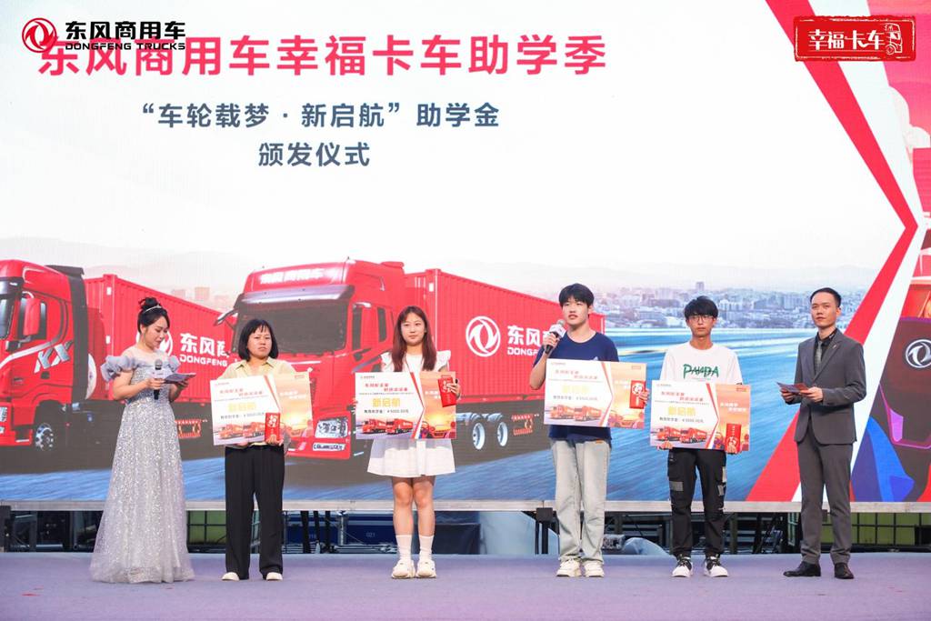 2024年8月10日,东风天龙KX/KL玉柴燃气新品上市暨幸福卡车助学季“家年华”在古都咸阳圆满落幕。东风商用车特设立卡友子女教育助学金,活动现场向38位优秀卡友子女代表颁发了“新未来”“新希望”“新启航”三类教育助学金,针对小学、初中、高中、大学不同学龄段卡友子女,共给予57900元助学金,旨在以公益力量点亮孩子们的梦想之路,为卡友幸福生活助力。