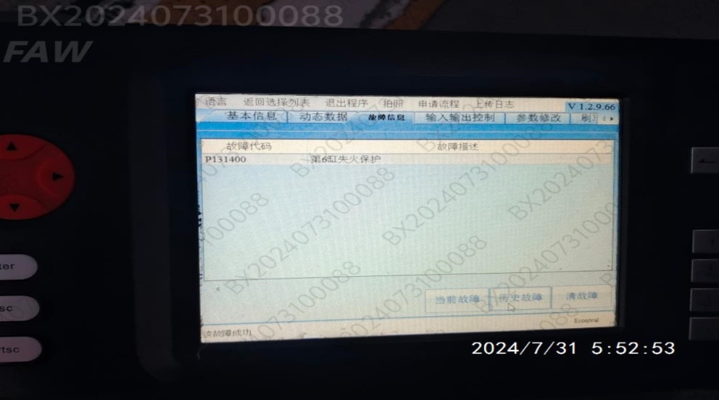 在站长张斌的带领下快速成立技术小组对车辆进行诊断。同时解放动力总成技术专家协助维修,共同寻找故障原因。