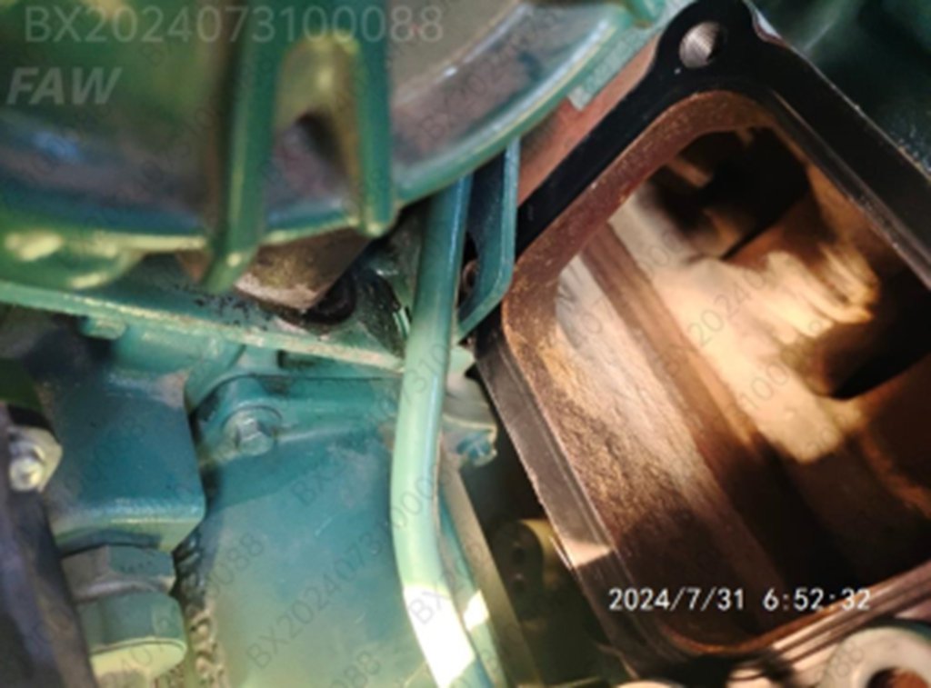 2024年7月31日凌晨3点左右,解放宝鸡宝信达服务站接收到来自客服中心的指派,距离服务站90公里有台J6V 530马力燃气车,该车发动机异常抖动,已经没有动力无法行驶。当时用户车上拉着牛奶,十分着急。服务站迅速组织技术总监和一名维修技师,带着相关配件及设备工具,火速救援用户。凌晨5:45分到达现场,立刻开始排查故障原因。