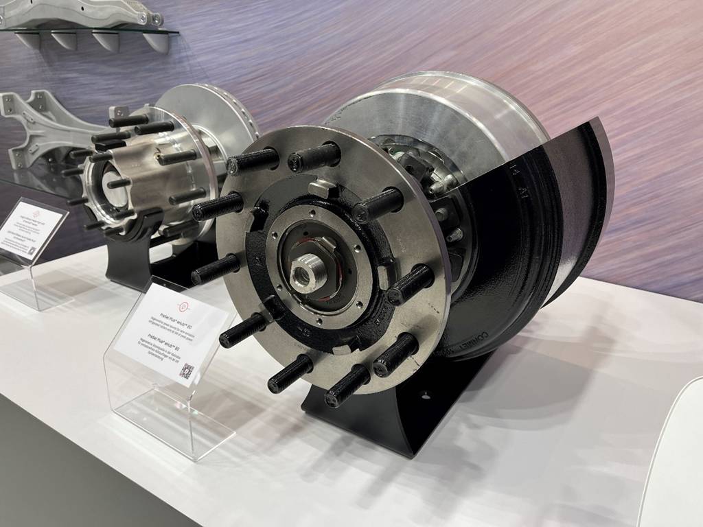康迈的轻量化产品应用于车辆轮端和底盘组件时,最高可减轻200公斤(约440磅),帮助车队提升载重能力并有效降低运营成本。展出产品包括: