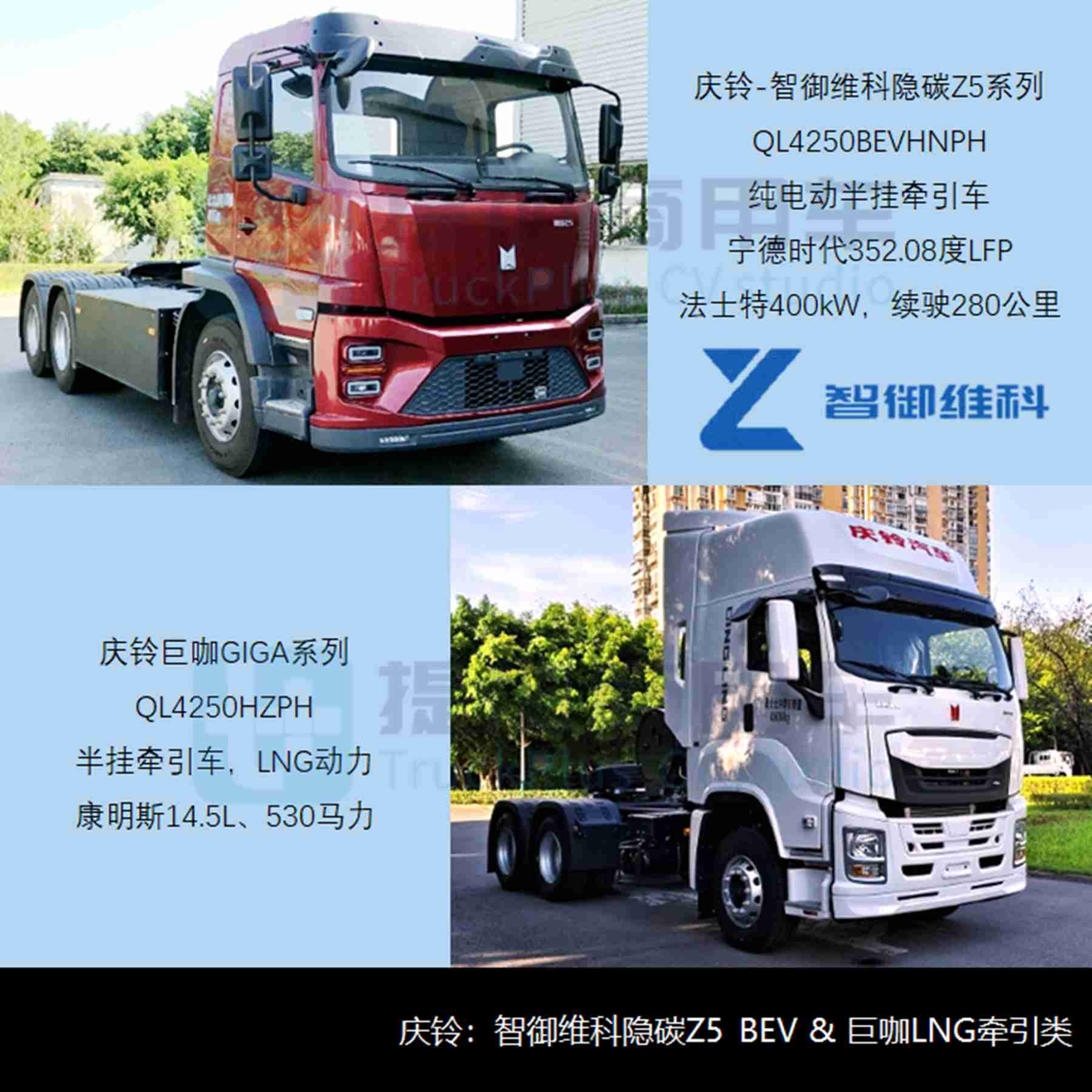 庆铃智御维科-隐碳Z5系列BEV+首款LNG牵引,中联湖桥-邦乐系列底盘现身