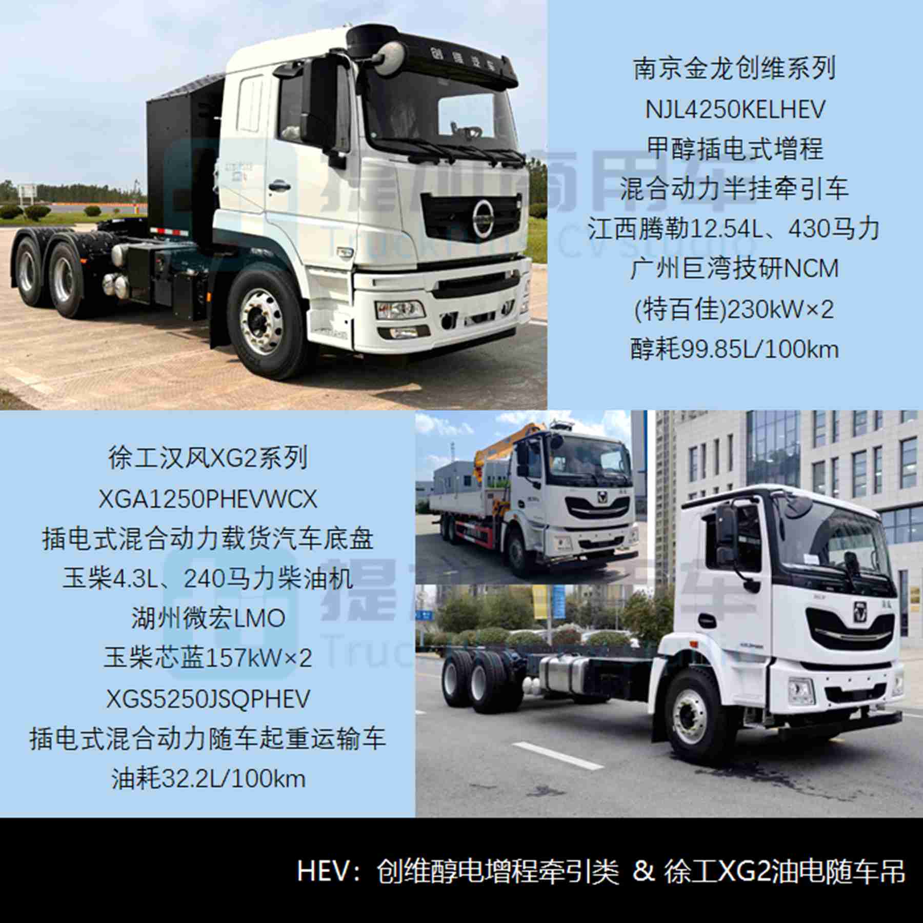 远程14升甲醇机、解放JH5 CNG危运,创维醇电REEV、徐工-玉柴eCVT