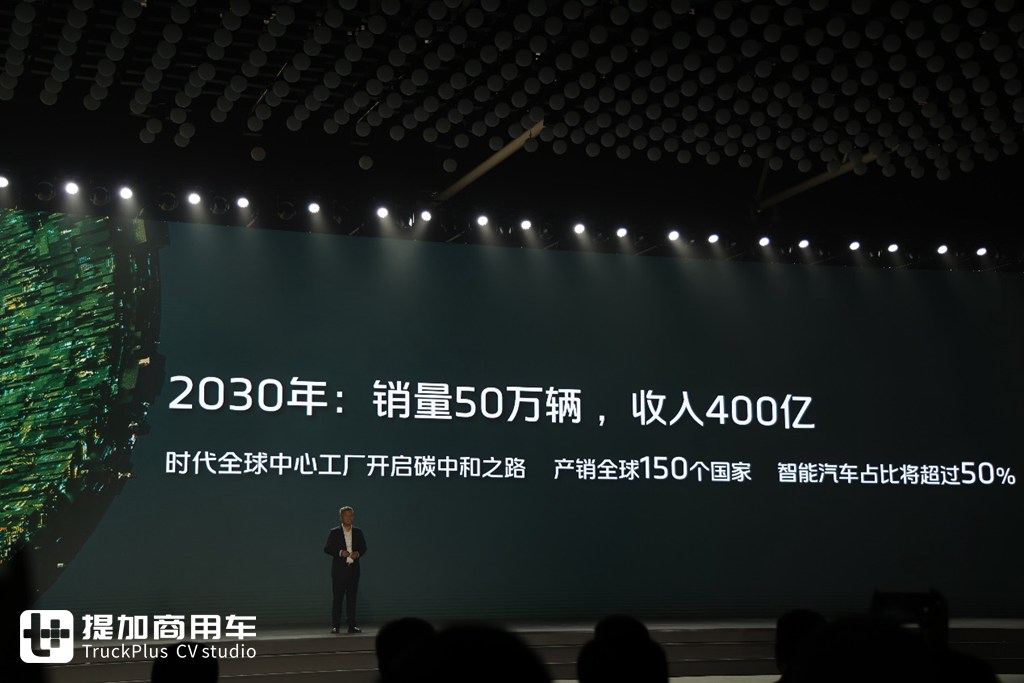 “时代汽车的中期目标是,到2030年力争实现销量50万辆,收入400亿元。其中新能源在全球占比超过50%,海外占比超过30%,产品产销覆盖全球150个国家及地区,智能汽车渗透率超50%,时代全球中心工厂2028年碳达峰,2030年碳中和。”刘旭光表示