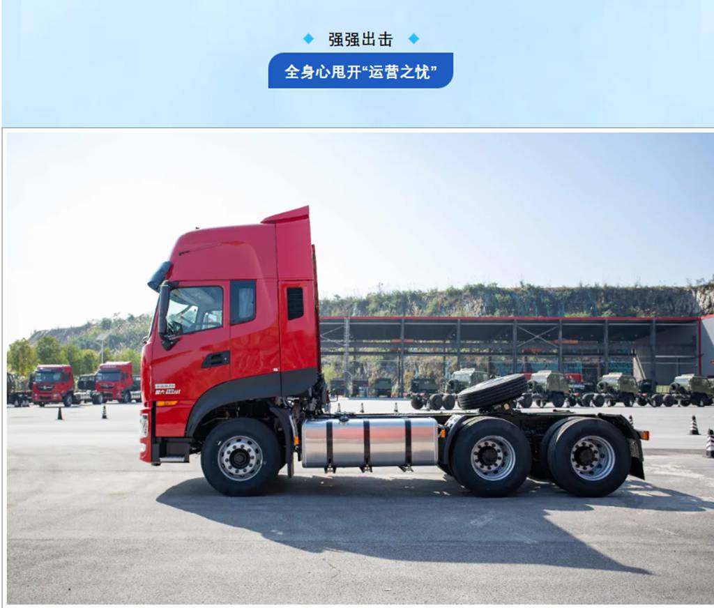 整车搭载龙擎DDi11发动机,马力达490Ps,与沃尔沃合作开发,采用高效增压器,制动功率提升20%;龙擎DA12变速箱,全铝壳体、智能控制、易于操控,可靠节油,降低TCO,黄金动力链深度匹配,逻辑互通,传动效率高。