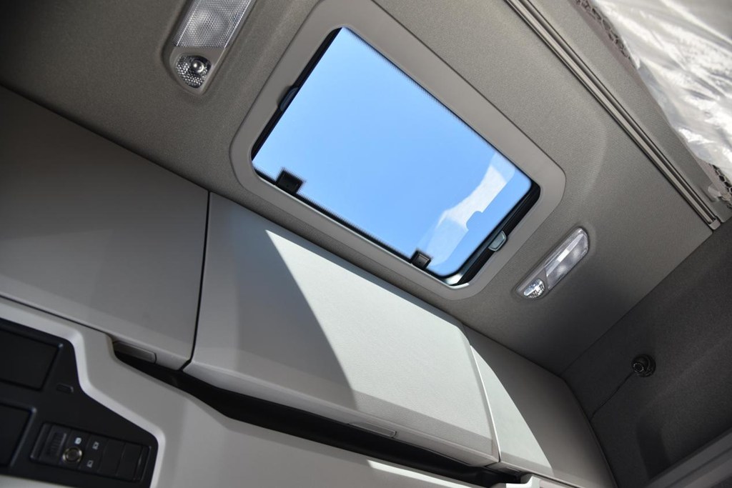 得益于高顶驾驶室,车内操作台顶部布置有超大容积储物空间,驾驶员能够携带更多换洗衣物、生活用品等个人物品,提升长途驾驶过程中驾乘人员的生活水平。