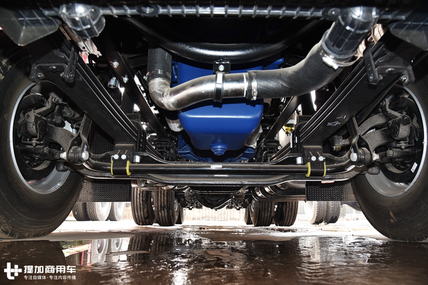 驱动方式6X4,悬挂为钢板簧悬挂,前三后四,轻量化设计,搭配铝合金油箱和大量减重模块,K5整车质量为8.8吨,与市场中大多数同配置车型相持平。