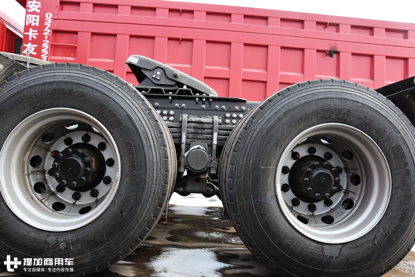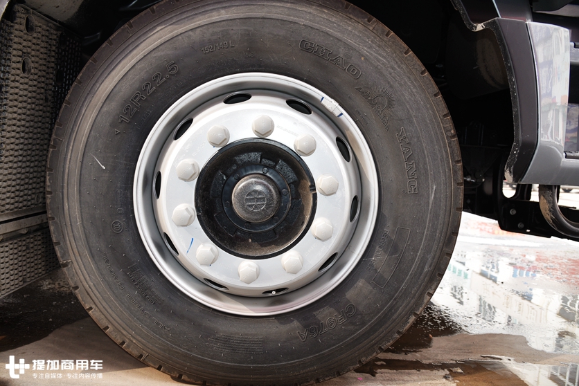 全车匹配铁质轮圈和12R22.5朝阳牌轮胎,如果对轮圈有特殊需求,可定制铝合金轮圈或买回去自己更换。