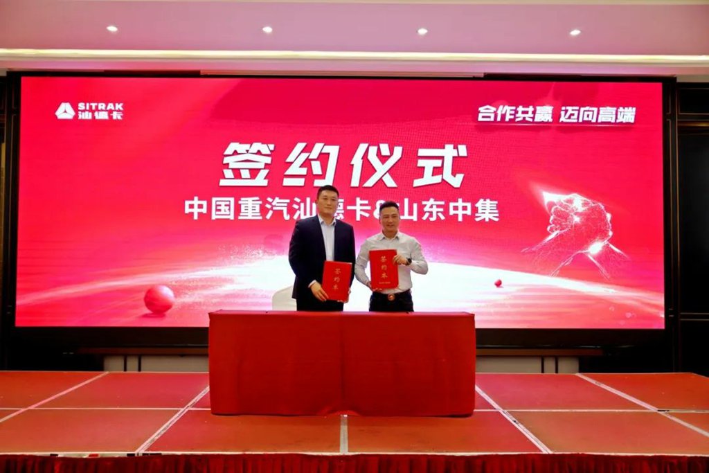 随后,中国重汽汕德卡与山东中集各方代表根据目前市场情况进行了合作经验分享,并在营销网络联合、爆款产品打造、活动宣传推广等多方面达成深度合作意向,现场进行了战略签约仪式,新一阶段的合作就此开启。