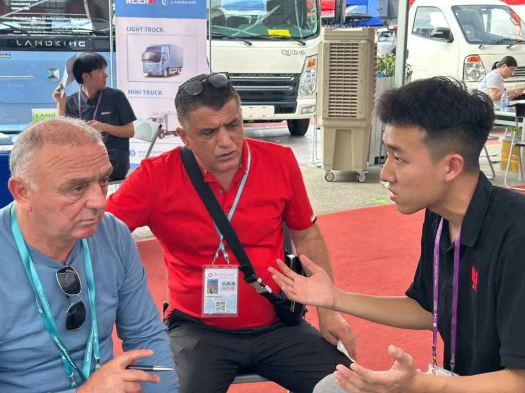 展会现场,来自中东、非洲、拉美、东南亚等地区的境外采购商络绎不绝。不少客户对江铃集团新能源系列车型表现出浓厚兴趣,不仅有客户现场确认样车订单,更表达了前往江铃工厂参观的意愿。