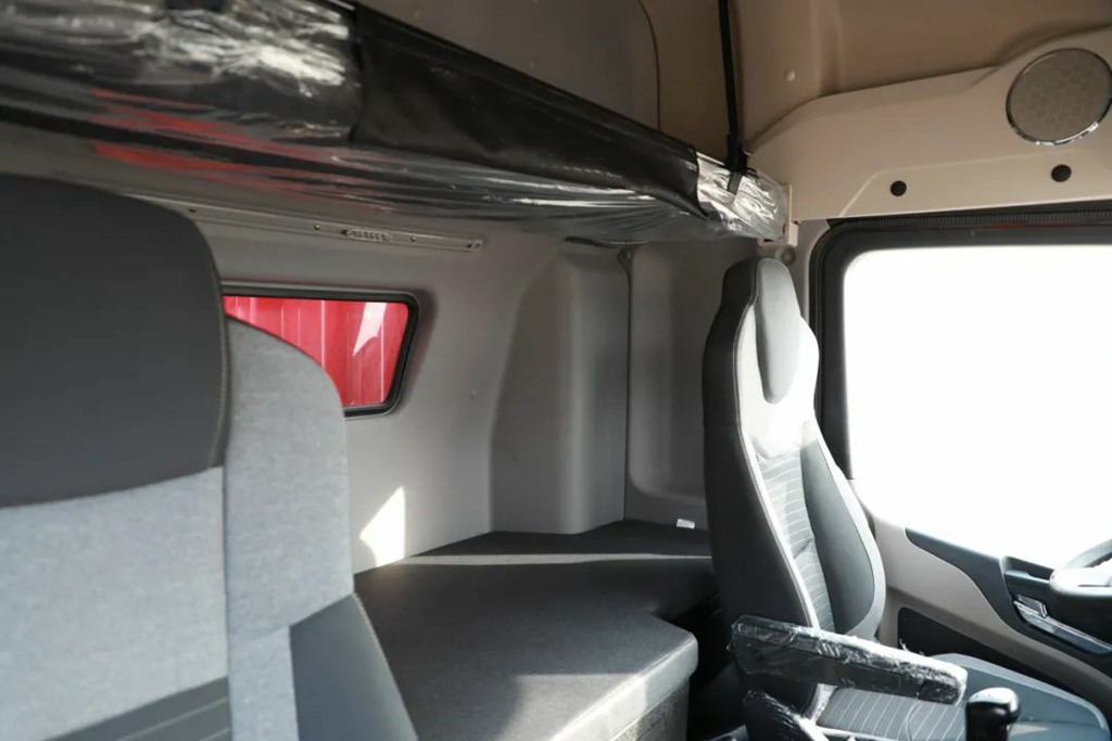整车基于全新平台精心打造,秉承了高端重卡X系列的卓越设计理念。其特色包括平地板、高顶双卧布局以及宽敞的850mm超宽卧铺,这些设计极大地拓宽并优化了驾驶室空间,为驾驶员营造出更为宽绰舒适的休憩环境。