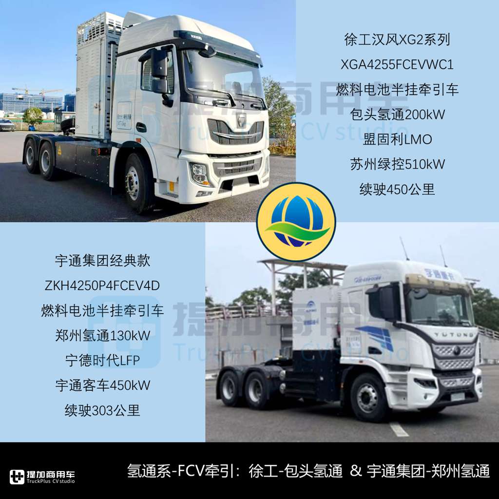 - 宇通集团携手郑州氢通新能源科技有限公司,申报了经典款ZKH4250P4FCEV4D燃料电池半挂牵引车,采用郑州氢通130kW燃料电池+宁德时代LFP动力电池,宇通450kW电驱系统,准拖35.92-37.07吨挂车,续驶303公里。郑州氢通成立于今年10月16日,位于郑州航空港科创中心。