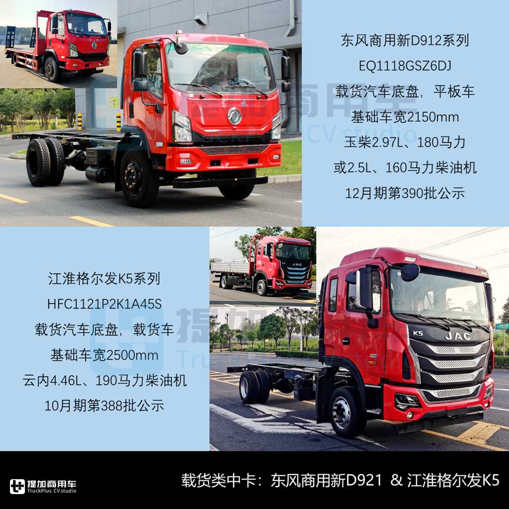 东风商用随州新D912、江淮12吨格尔发K5“大中卡”、9吨帅铃H系CNG版
