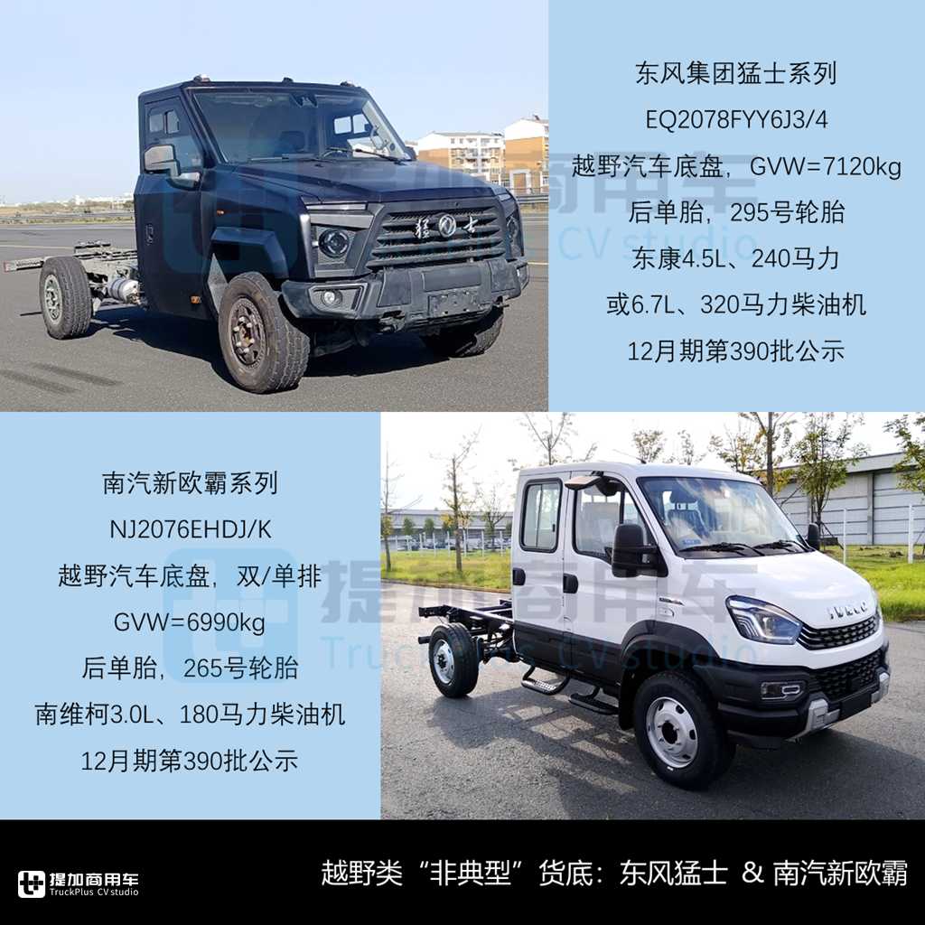 四季度的2字头越野类新品共计十款,分别为1-4-5款,具体包括五款中卡类、三款轻客Cab类、长头重型皮卡和平头轻卡各一款——可见在7吨以下的越野类底盘车中,非传统的N类货车仍保有一席之地,尤其是长头结构的欧系轻客与重型皮卡,在部分专用车领域有较高认可度。以下进行简述: