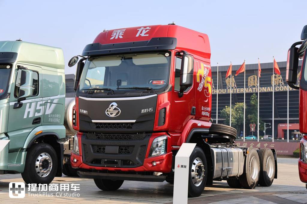 乘龙H5牵引车:定位资源类运输,6X4国六车型自重仅7.38吨,助力用户多拉快跑。搭载潍柴WP12系列发动机,最大480马力,匹配12挡手动挡变速箱和3.7黄金速比,符合资源类运输对车辆耐造、动力强、路况适应性强的需求。