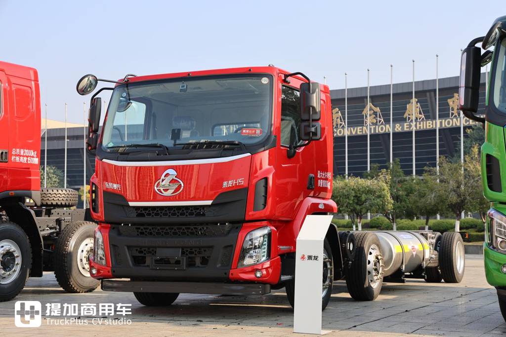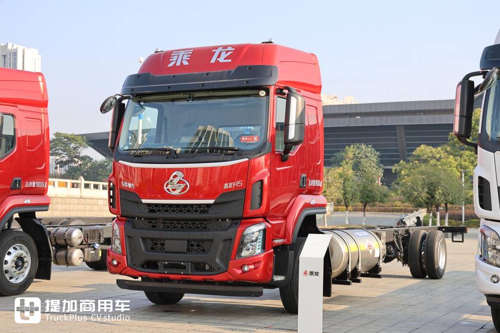 乘龙H5 280马力大单桥:采用H53S进气道前置驾驶室,货箱长度可做到9米8。动力升级高端康明斯D4.5发动机,最大280马力,匹配法士特小8挡变速箱和4.11速比后桥,轴距7100mm,前铝合金轮毂,高端中短途大单桥当中的“六边形战士”。
