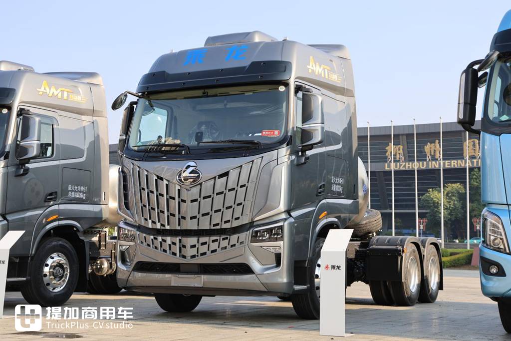 乘龙HK 630马力LNG牵引车:康明斯Z15N动力,马力再提升,现最大630马力,扭矩2600N.m,搭载龙犀节能技术,气耗降低5%。匹配伊顿赢动AMT变速箱,液力缓速器和3.364速比后桥。驾驶室采用HK高端驾驶室,卧铺1100mm宽,标配12.3寸液晶仪表和12.8寸车机,带有360°全景影像、顶置空调等配置。