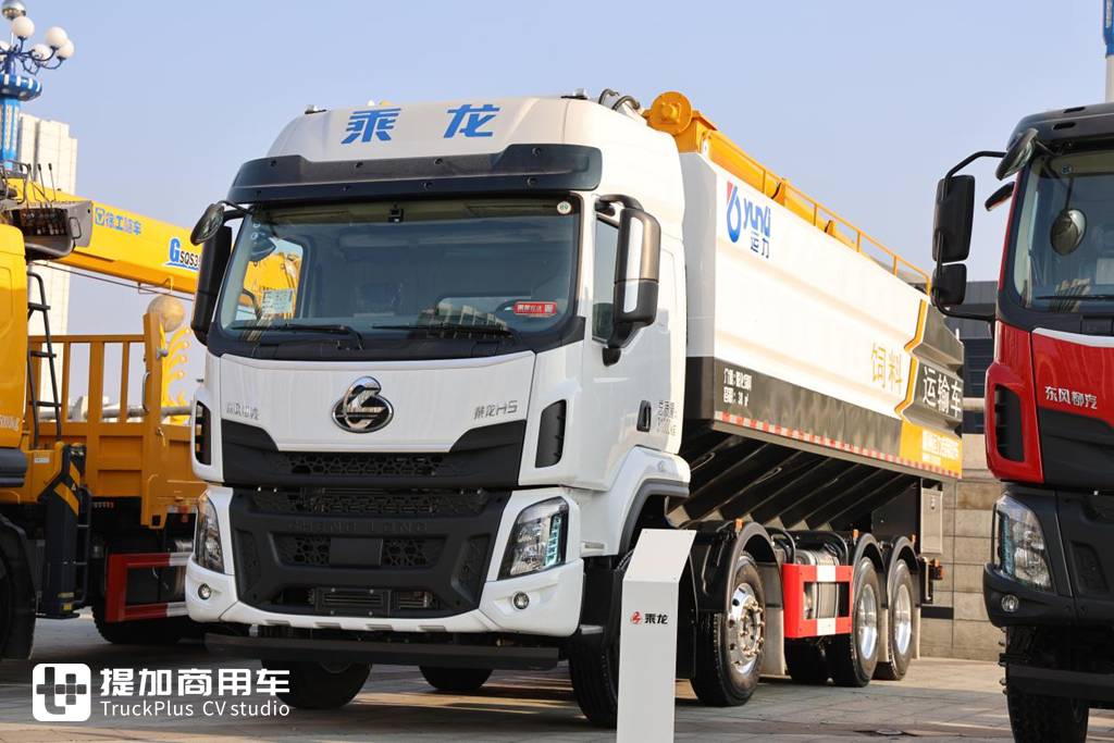 乘龙H5饲料运输车:轻量化设计,全车铝合金轮毂,悬架结构更新,自重相较竞品降低300kg。搭载玉柴YCK09系列发动机,最大400马力,中段排量大马力,兼顾省油与动力。匹配法士特12挡变速箱和400后桥,速比4.111,轮上扭矩大,特定工况下具备良好脱困能力。