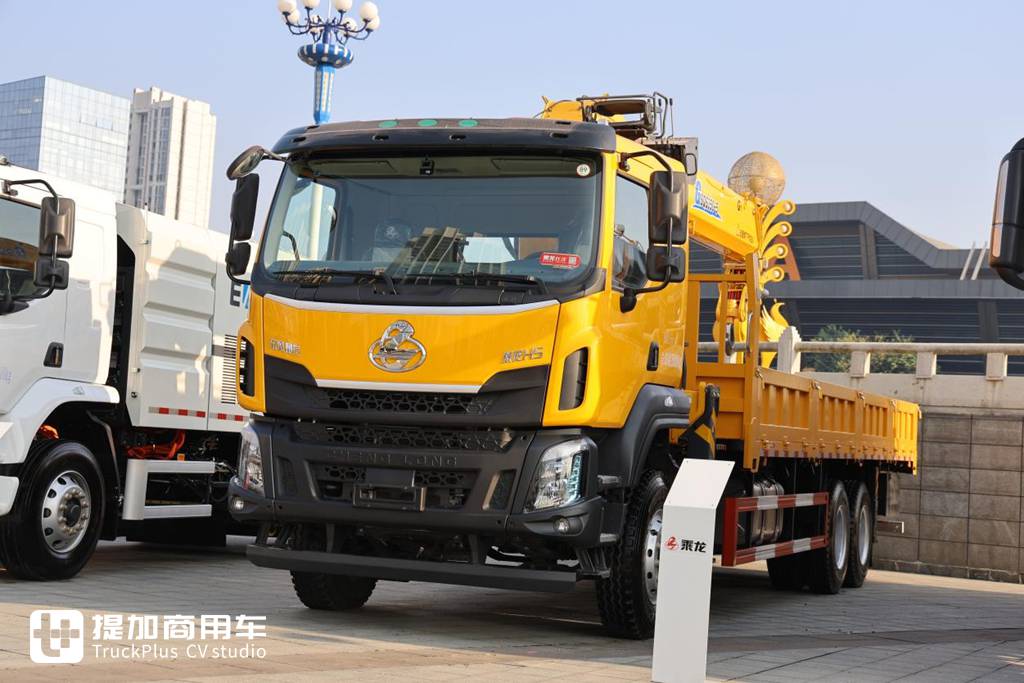 乘龙H5随车吊:针对随车吊工况进行加强设计,大梁采用750MPa钢材,局部3层大梁,车架5层涂装工艺,防腐防锈。搭载玉柴YCS06系列发动机,最大270马力,匹配法士特9挡变速箱,4.875速比后桥,后悬挂双骑马卡设计,适应重载工况。