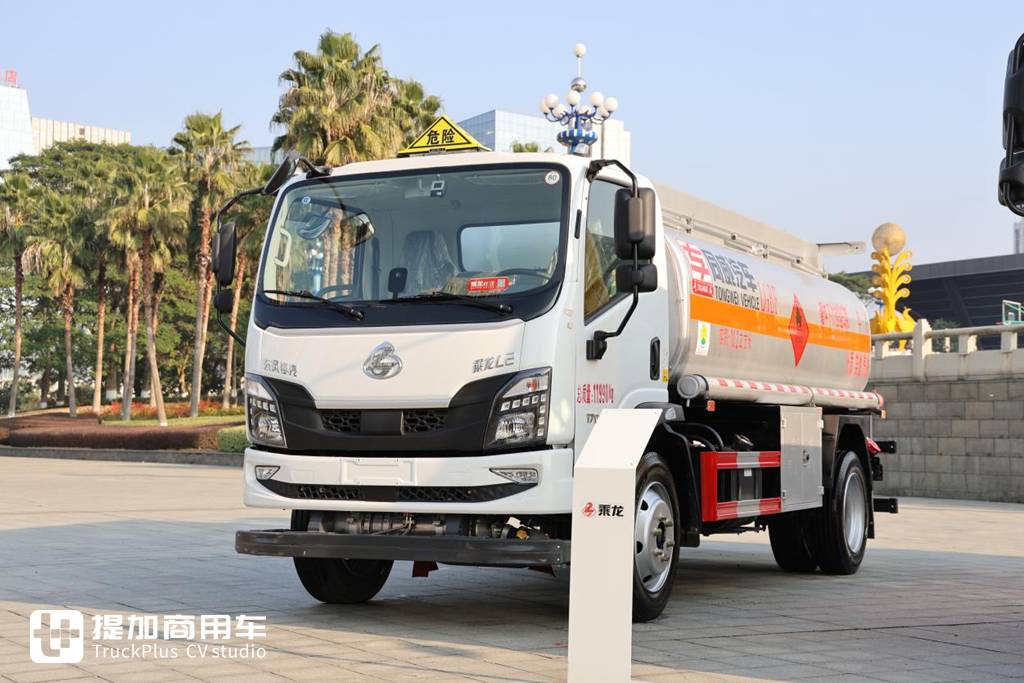 乘龙L2加油车:整车自重4990kg,油罐容积最大10.2m³,可配双加油机。搭载玉柴YCY30系列发动机,最大170马力,匹配法士特8JS85E变速箱,挡位齿比按照重载设计,对于加油车而言比较实用。底盘离地间隙最低34cm,可以进工地给挖掘机、自卸车等工程机械加油作业。