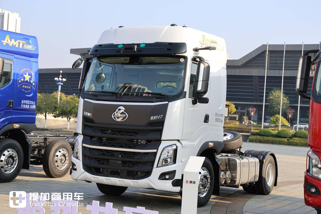 乘龙H7 Pro 610马力LNG牵引车:外观内饰全新升级,聚宝盆造型格栅,配置全LED大灯、360°全景影像、10.8寸液晶车机等。搭载玉柴YCK15系列610马力LNG发动机,匹配法士特12速AMT变速箱,液力缓速器和3.364速比后桥,实现同马力段下的高性价比车型。