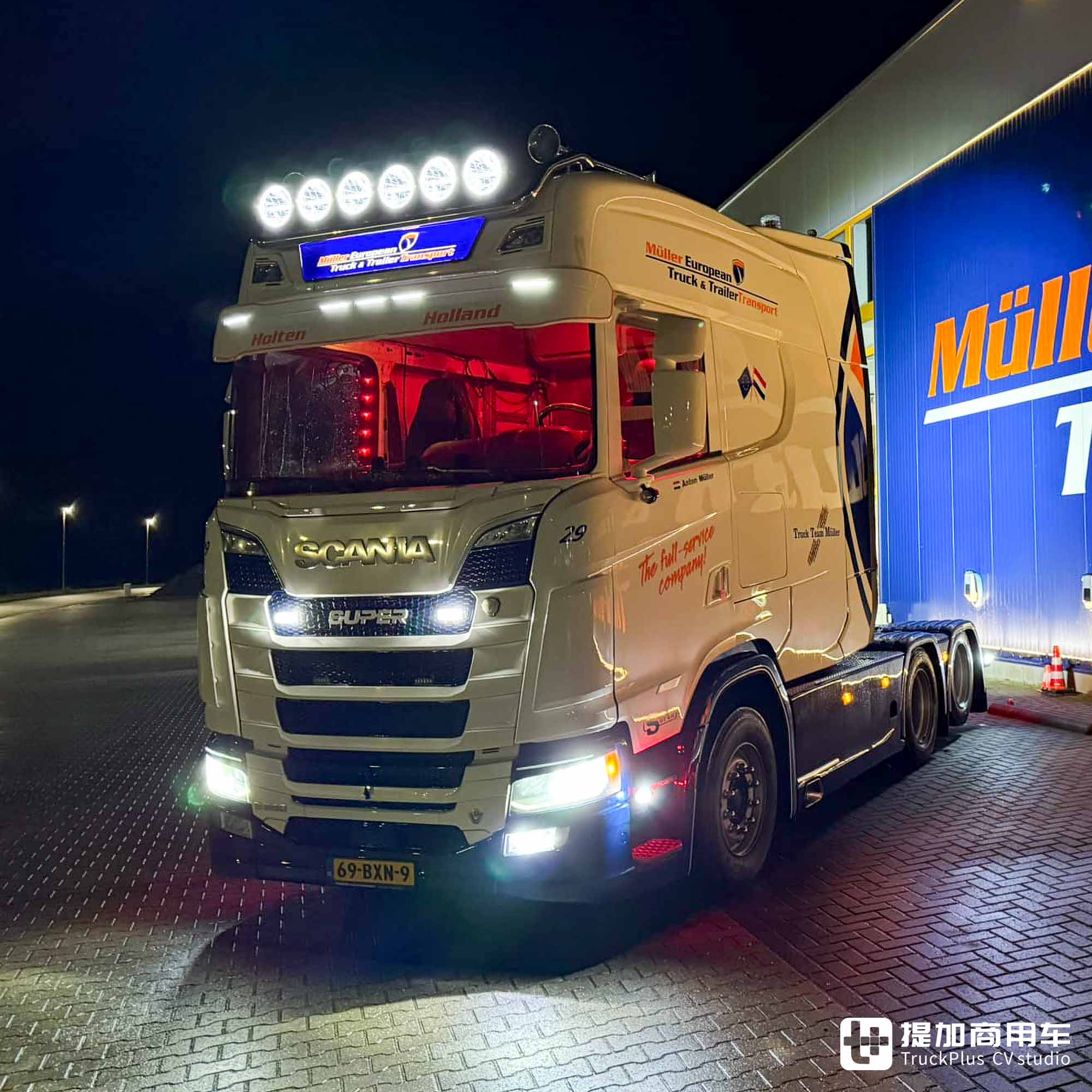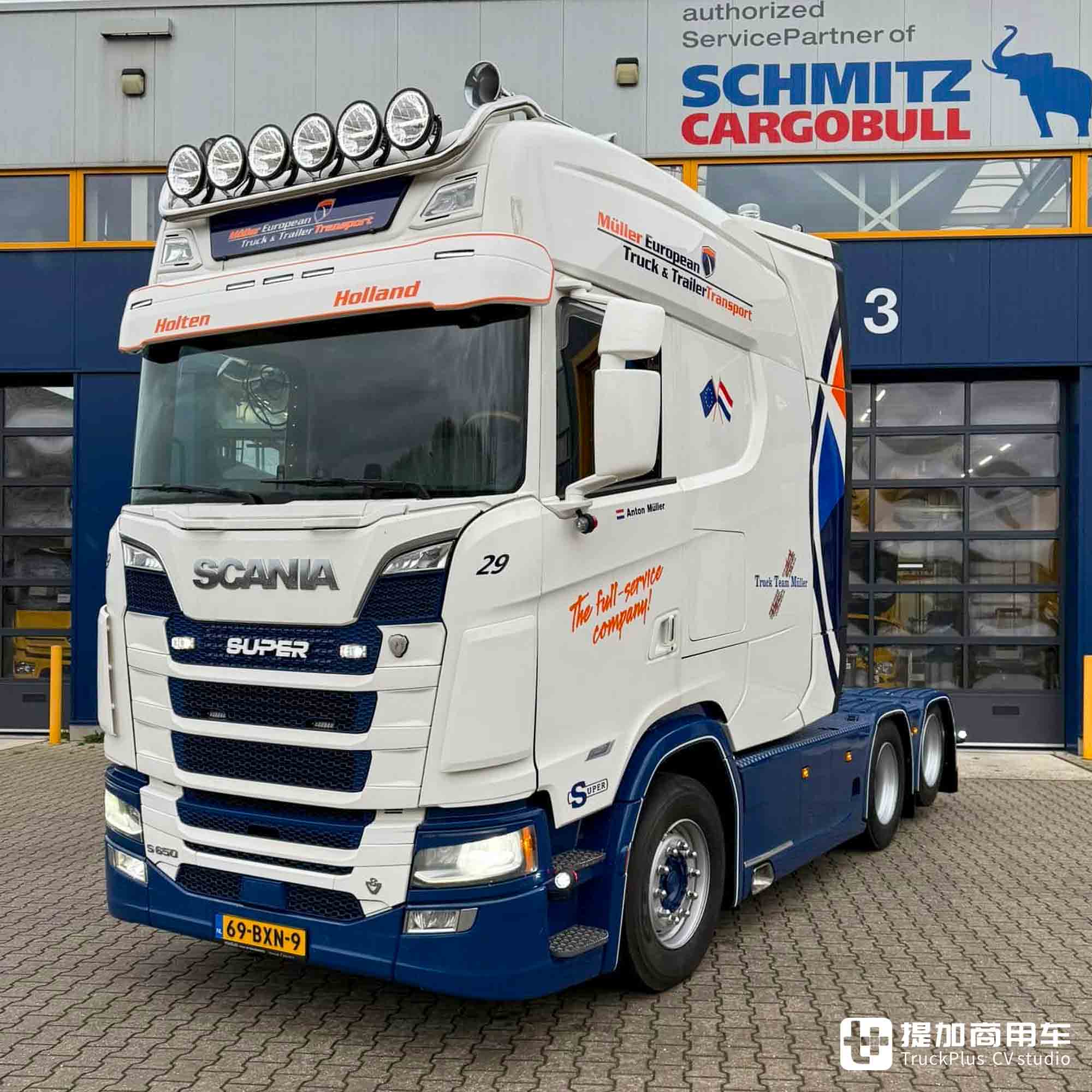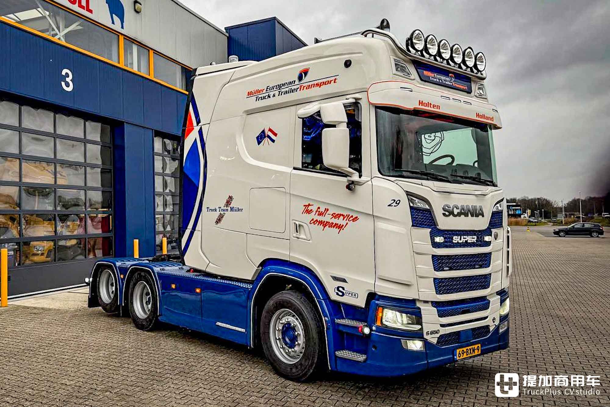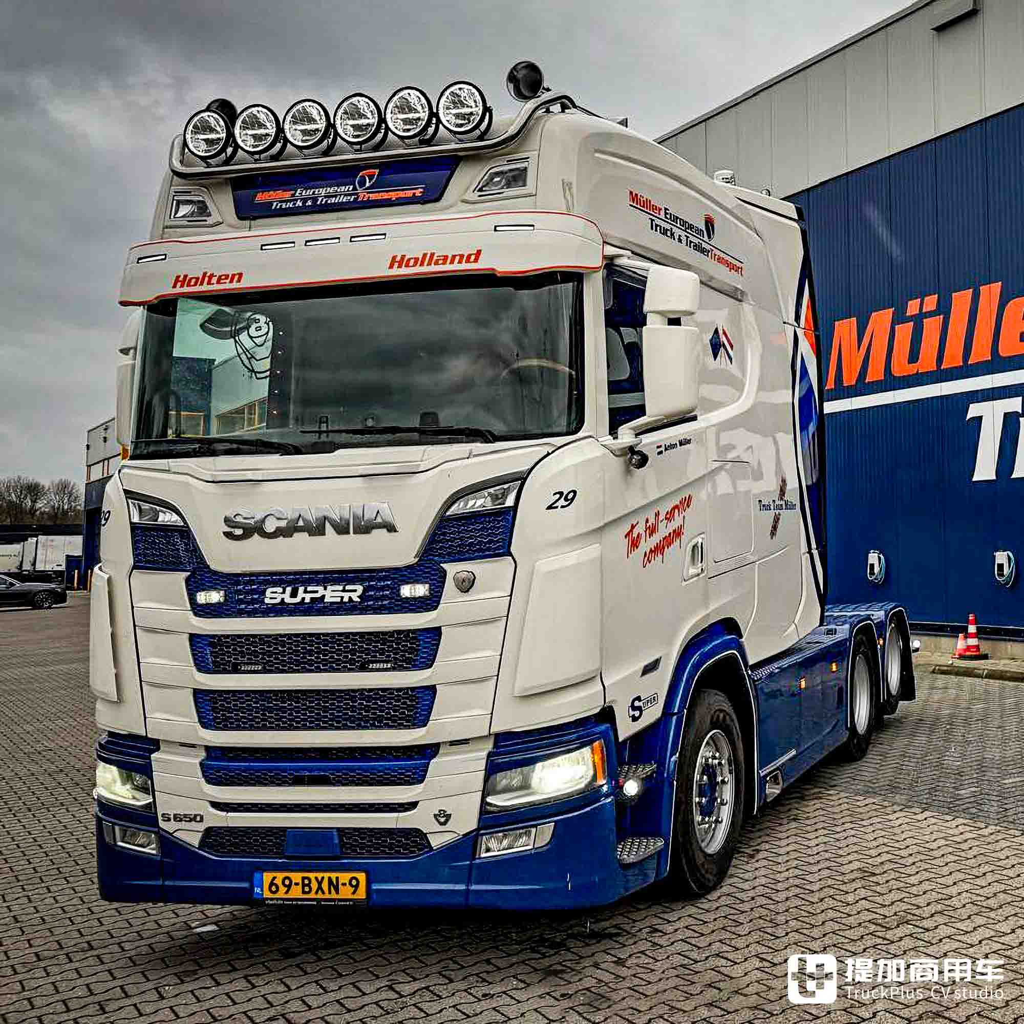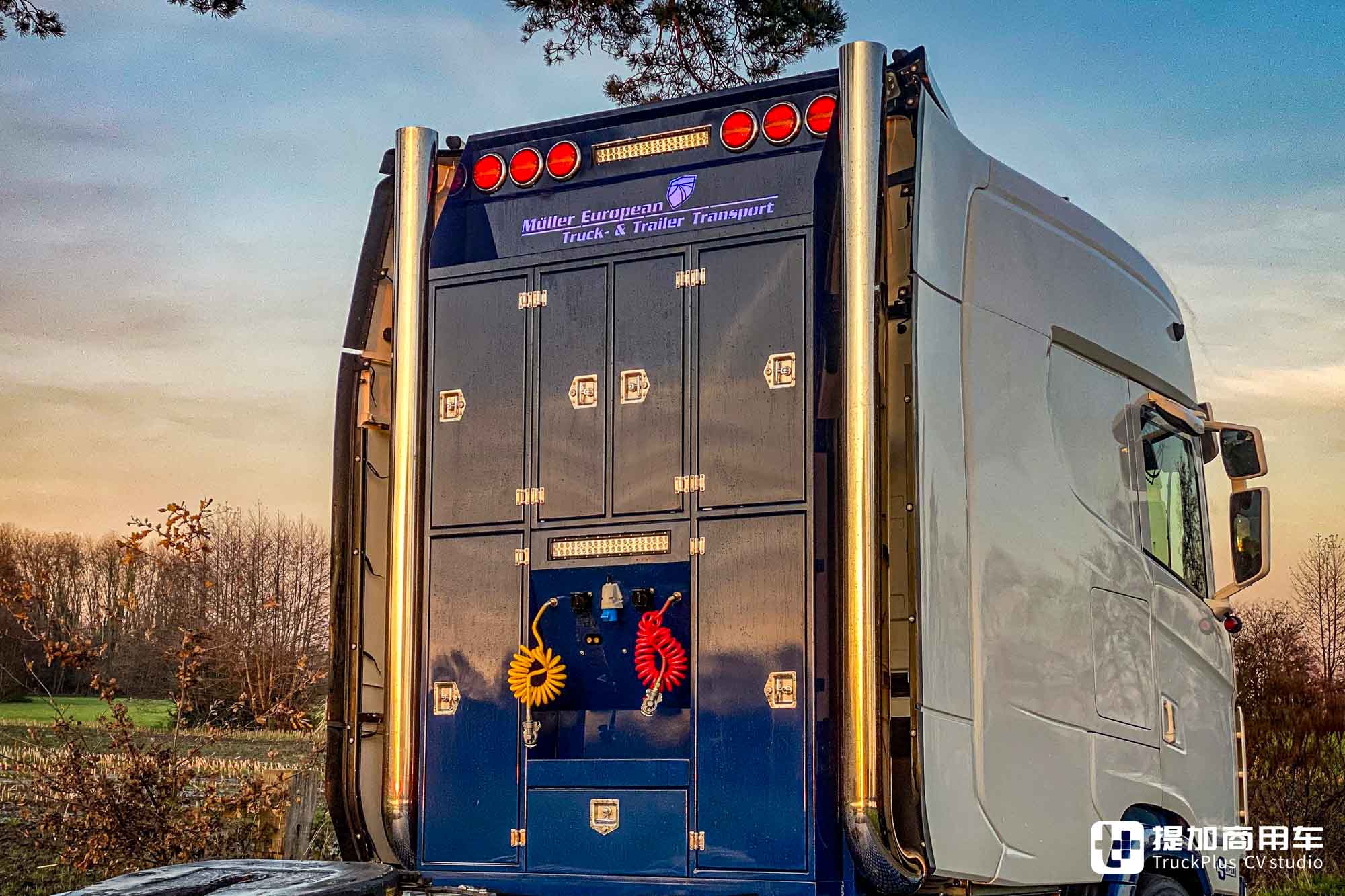 今天,我们文章的主角正是一台斯堪尼亚S 650改装卡车。它搭载了改装的超长款XXL驾驶室,长度达到了3米级别,成为了道路上的移动会客厅。这台卡车的主人是来自荷兰的Müller European Truck & Trailercare Holten公司。从名字上就可看出:该公司主要从事于卡车及挂车的维护保养和道路救援。一方面是财力雄厚,另一方面是需要一台标志性的卡车来提升品牌形象。加长驾驶室的斯堪尼亚,对于这种需求而言再好不过了。