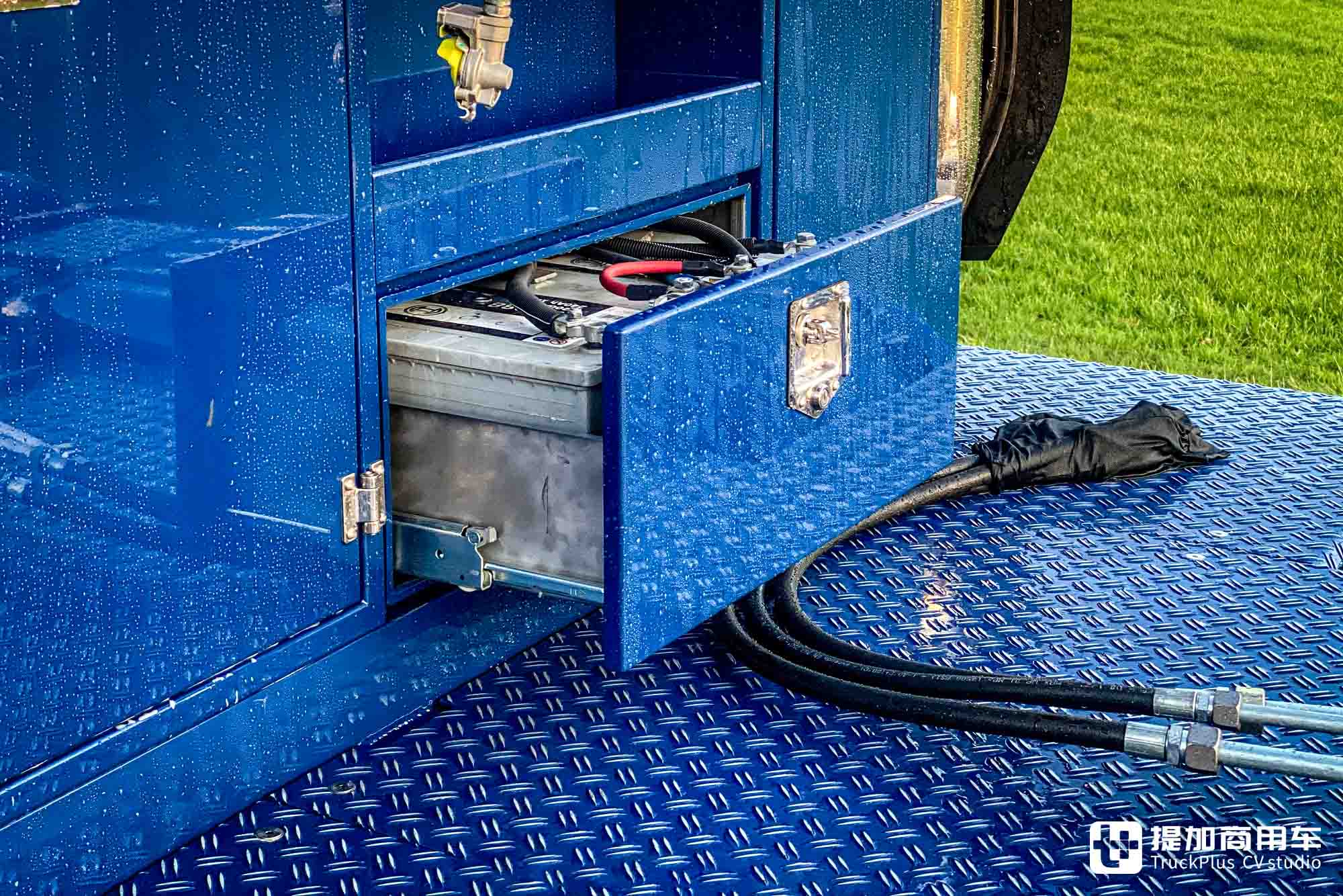储物箱内甚至集成了24V电瓶,可以用于搭电等操作