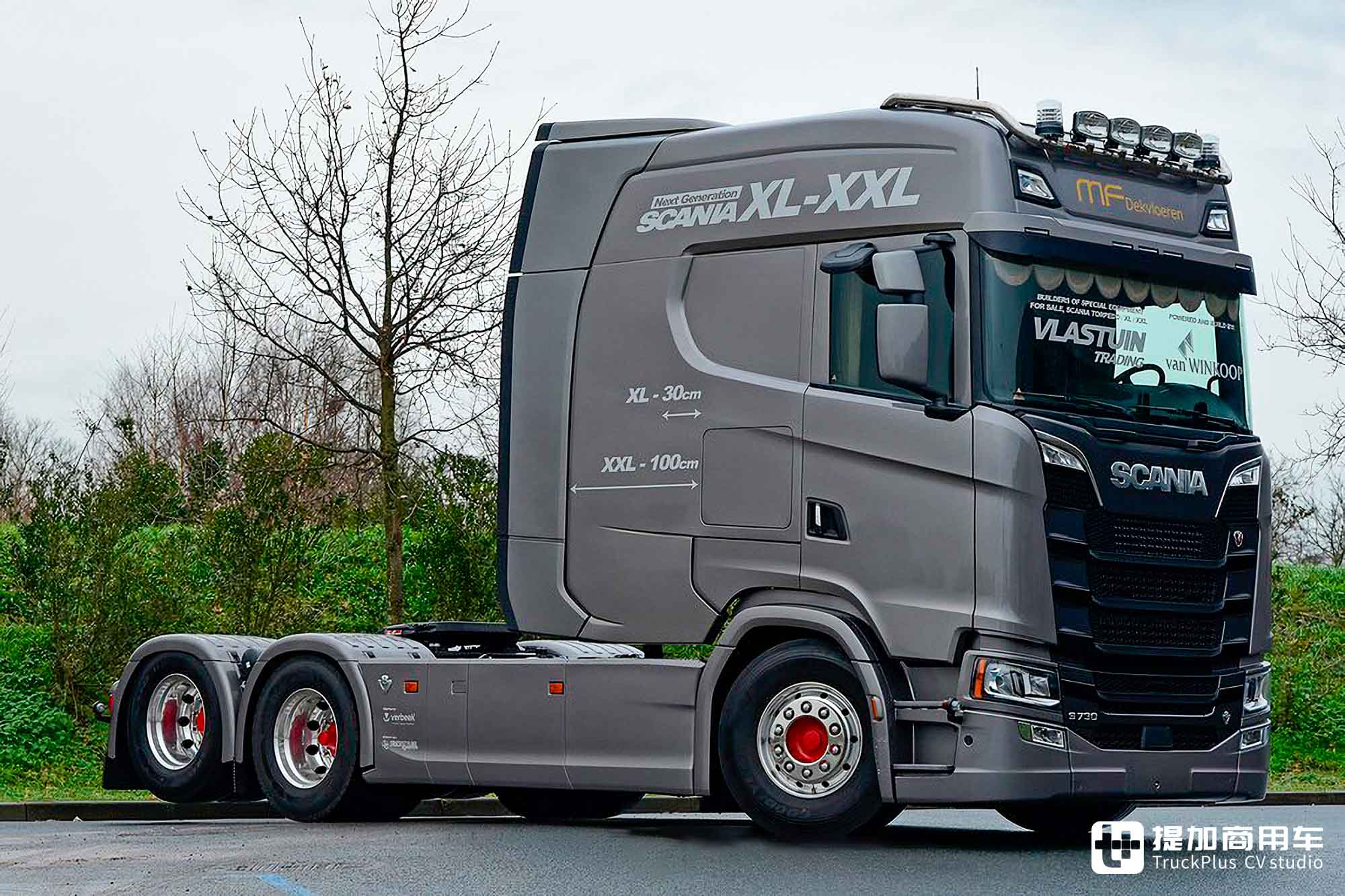 Vlastuin Truckopbow为加大号驾驶室提供了两种不同的改装方案。第一种是XL,它的驾驶室向后加长了30厘米;第二种是XXL,它的驾驶室向后加长了100厘米。如今,斯堪尼亚已经推出了原厂加长的HighLine XL(Cx23)系列驾驶室,它顶替了XL改装方案的生态位。再加改装成本核算,因此市面上基本只有XXL改装方案的车型。