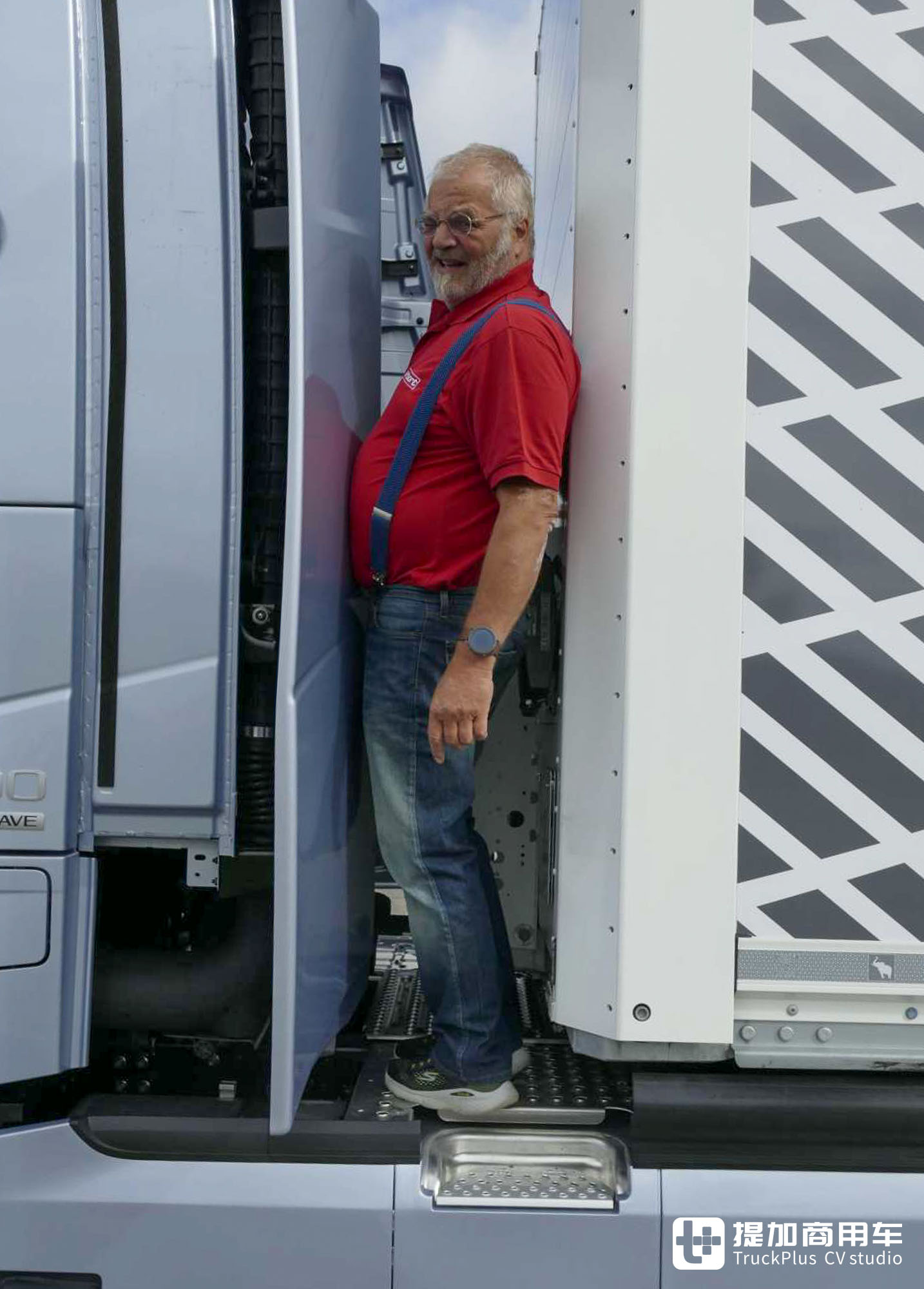 结合新的前脸造型,沃尔沃FH Aero还设计了大面积的翻折式踏板。将其翻下后能够更加方便的清洁前风挡玻璃,甚至还能够直接坐于其上,当作方便的板凳使用,吃饭休息都挺合适。
