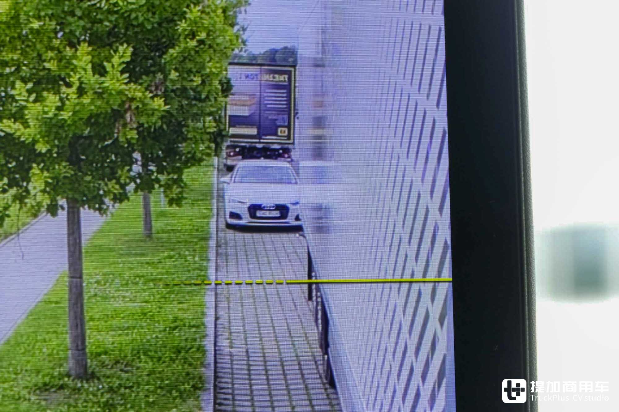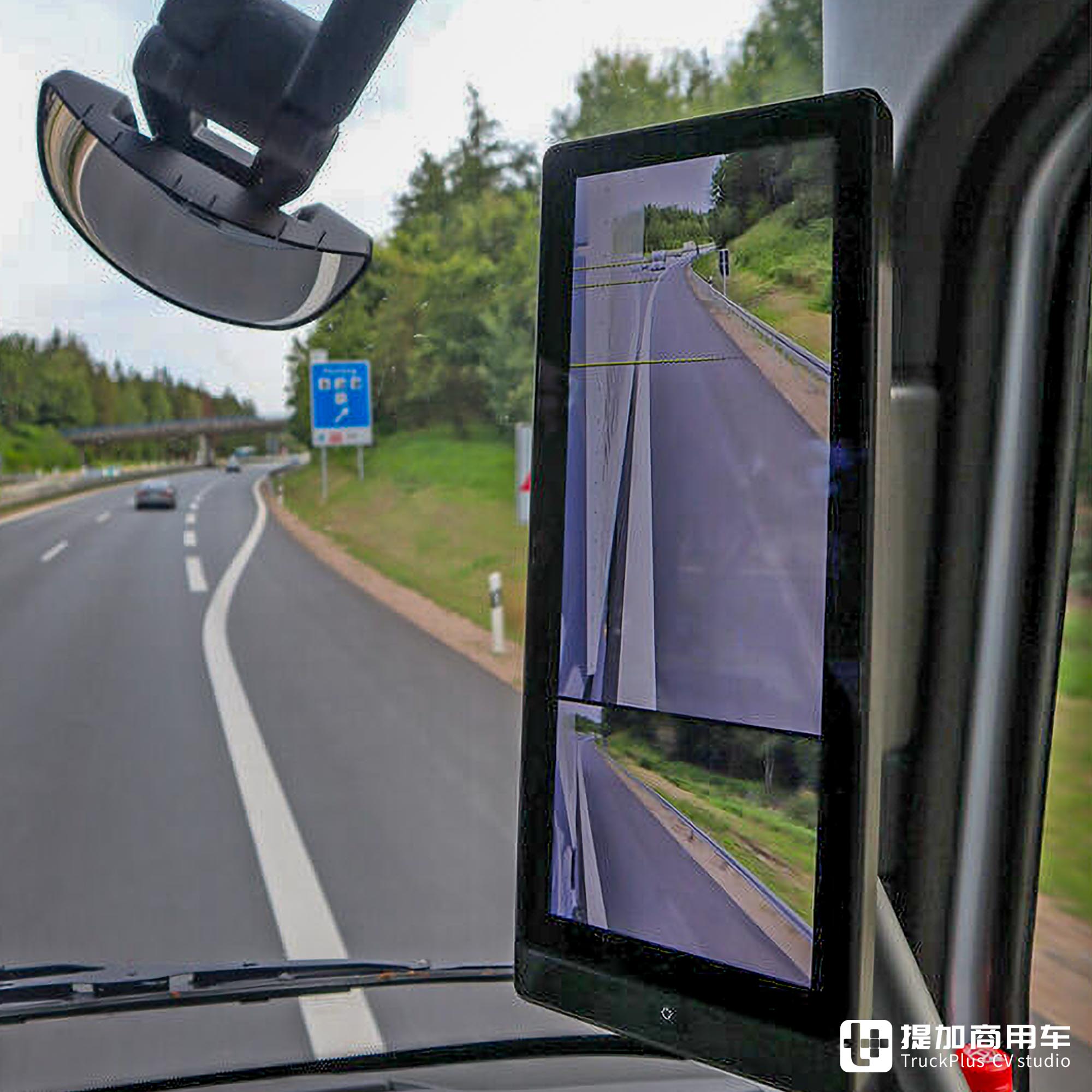 不同于传统光学后视镜而言,电子后视镜画面的立体感要略逊一筹。正是因此,沃尔沃FH Aero的电子后视镜画面上设计有可调标线,用于指出车尾位置,进而便于操控车辆,类似的设计也能够在其他友商产品上找到。