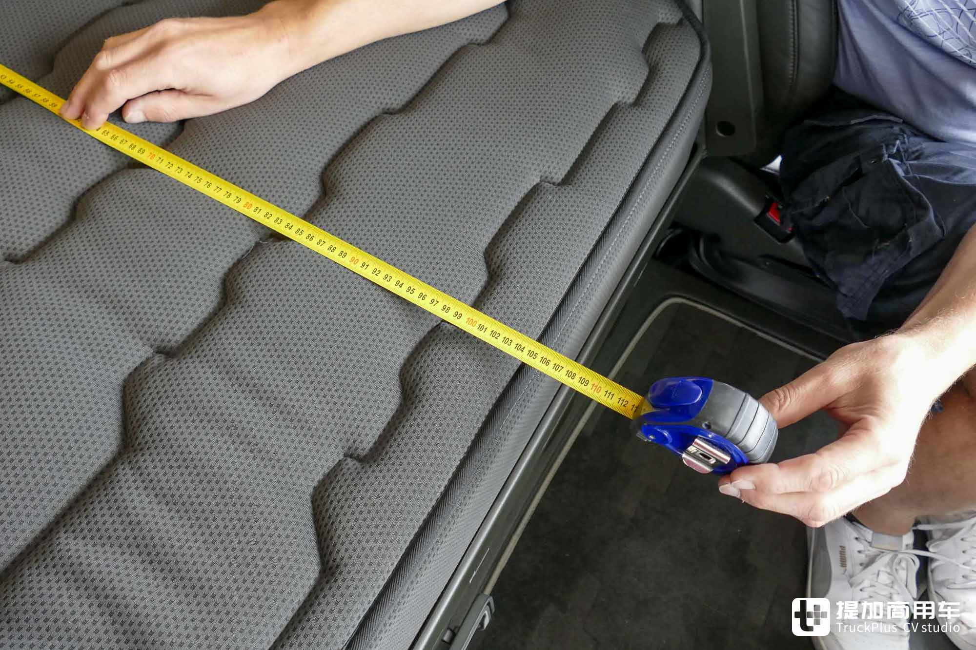 相较于沃尔沃FH Aero可选的其他驾驶室而言,Globetrotter XXL驾驶室的好处在于:卧铺空间是真的大。其最宽处达到了106.5厘米,最窄处仍高达100厘米左右。在欧洲卡车之中,这样的卧铺宽度已经是非常优秀了。