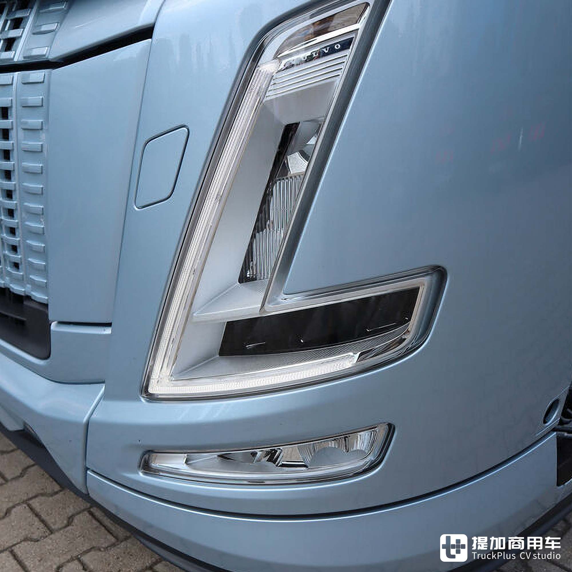 在前格栅左右,沃尔沃卡车标志性的V字形大灯得到了保留,象征着VOLVO品牌。在LED灯光技术的加持下,车辆V字形大灯的线条更简约,同时也有着良好的照明效果及较长的使用寿命。根据配置及需求不同,车辆还可选装自适应远近光功能,避免远光晃及对向行人及车辆,安全性更高。