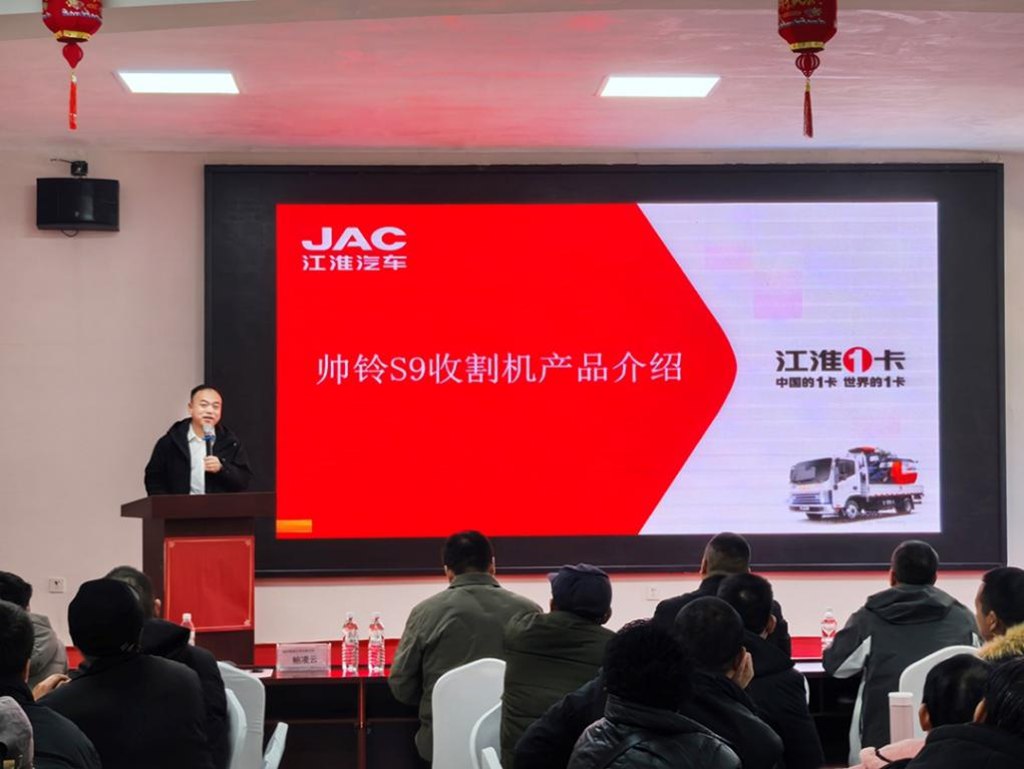 在本次驻马店贺岁团购会中,江淮1卡帅铃为收割机用户带来了专为农机背载定制打造S9车型,动力强劲,稳定可靠、舒适省心。