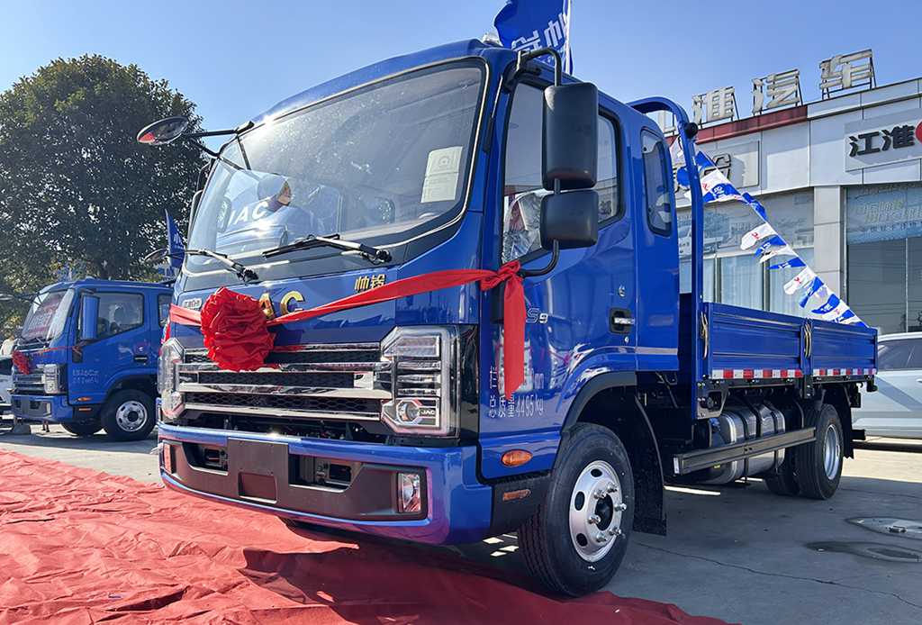帅铃S9,驾驶室宽2090mm宽体驾驶舱更舒适。货箱最大尺寸3850x2100x400mm。搭载安康动力2.5L、4.0L系列,最大马力170Ps,最大扭矩460N·m,动力强劲。法士特8档变速箱,精准操控,爬坡不费力。超长轴距,行驶更平稳安全。