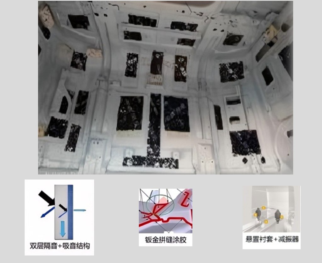 同时,吸音技术也得到了广泛应用,多层隔振、止振材料以及高达70公斤的吸音棉材料,共同构成了强大的噪音吸收系统。此外,发动机仓环绕隔音材料和发动机下护板的运用,进一步提升了隔音效果。
