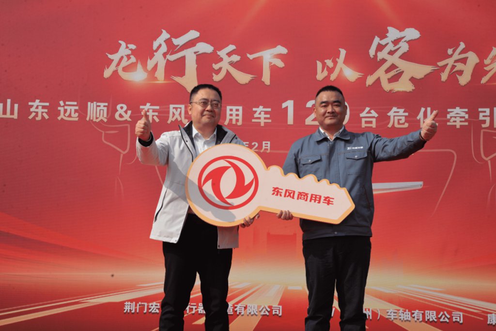 远顺物流总经理孙学飞在交付仪式上表示:“2010年开始,山东远顺与东风商用车携手走过了十五载的光辉岁月。从经典的天龙,到性能更优的新天龙,再到高端的天龙旗舰,直至本次引入的120台东风商用车龙擎新一代重型动力链危化牵引车,每一次的产品升级,都见证着我们合作的持续深化。然而,始终不变的,是东风商用车给予我们的坚实可靠的保障,是与我司同频共振、共同进步的初心。展望未来,我们满怀期待,衷心希望东风商用车能够一如既往地为我们提供更具创新性的产品、更贴心周到的服务。让我们以更加坚定的信心,共同开拓国内外更广阔的市场,创造更加辉煌的未来。”