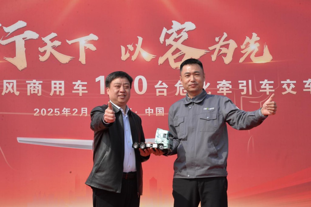 2月28日,在山东东营市,东风商用车有限公司再度携手山东远顺物流有限公司(以下简称:远顺物流)达成深度战略合作,成功交付120台东风天龙KX危化牵引车。远顺物流有限公司董事长张延刚、执行董事张国峰、总经理孙学飞,东风商用车有限公司总经理助理方勇、营销事业部总经理刘翼、营销事业部党委书记蔡伦新、营销事业部行业客户开发部副部长薛林艺,东风汽车贸易有限公司总经理刘力,以及东风龙擎动力有限公司总经理邓尉平、党委书记叶峰,共同见证这一里程碑时刻。此次大批量交付活动,既是2025年国内危化品运输领域的首批120台车辆交付,代表了东风龙擎3.0高效智慧动力链的可靠证言,更是东风商用车在高端危化市场的重大突破,为行业树立了安全、高效、低碳的危化品物流运输新标杆。
