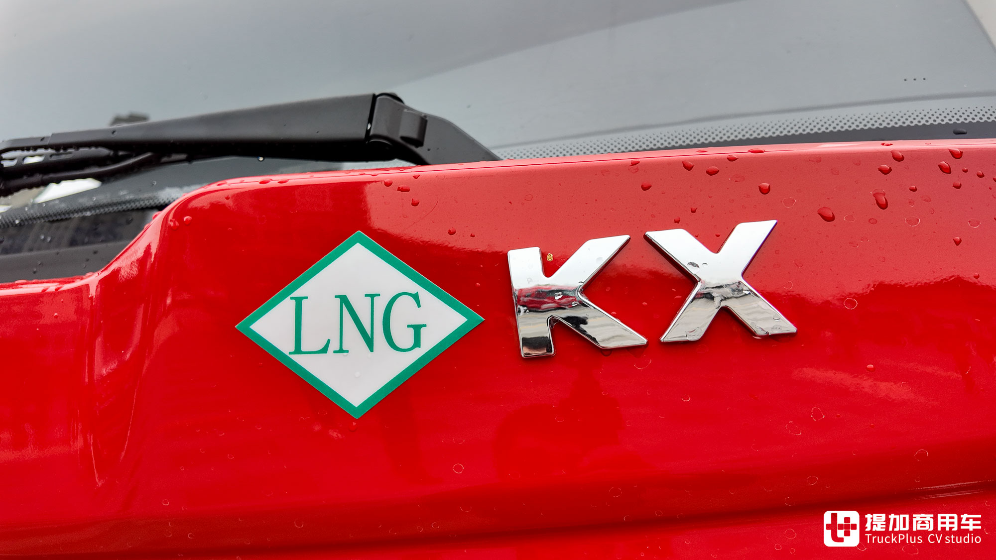 根据车型不同,东风天龙KX新嵘耀车型的驾驶室侧面也带有KX等不同的拉花装饰字样