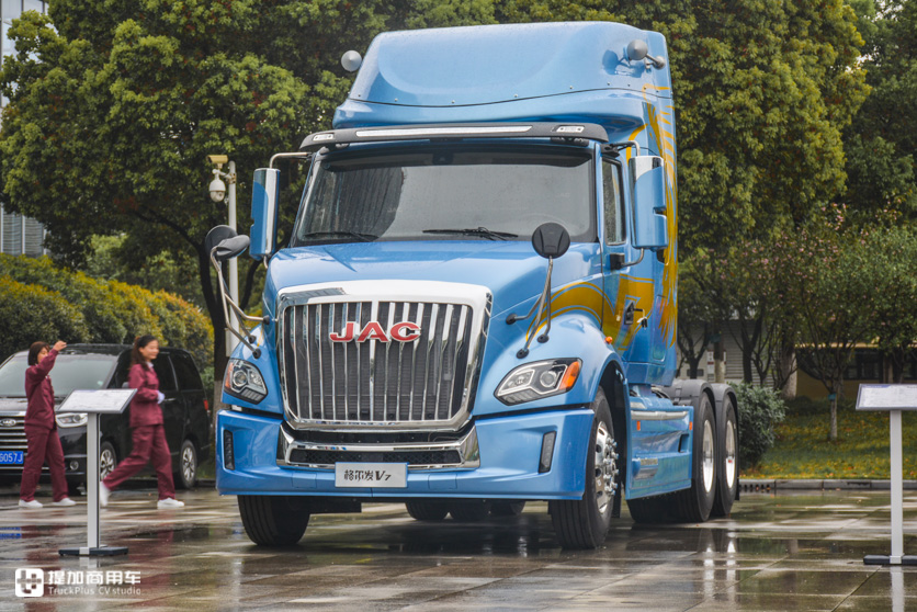 江淮最高端的旗舰重卡是K7系列,一款欧式风格的平头卡车,大家也不陌生了。据我们了解到的消息,长头版的V7在产品定位上会比K7更高一点,也意味着价格会比K7更贵。