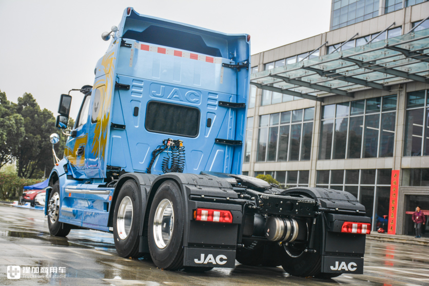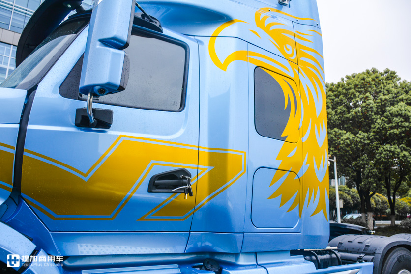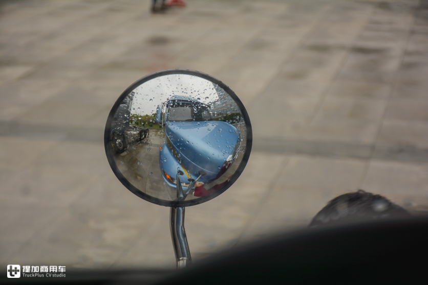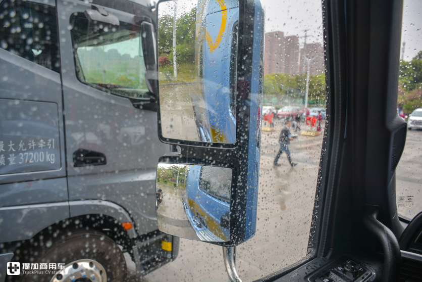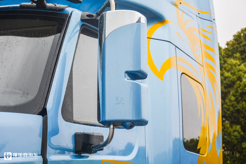 顶部的导流罩和驾驶室形成一个整体,过渡很圆润,能减少一些风阻系数。导流罩高度不可调节,整车高度3850mm,仅比格尔发K7低8mm。